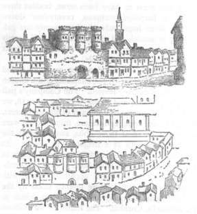 The London of Chaucer's time (the reigns of Edward III. and Richard II.) was a scattered town, spotted as thick with gardens as a common meadow is with daisies. Hovels stood cheek by jowl with stately monasteries, and the fortified mansions in the narrow City lanes were surrounded by citizens' stalls and shops. Westminster Palace, out in the suburbs among fields and marshes, was joined to the City walls by that long straggling street of bishops' and nobles' palaces, called the Strand. The Tower and the Savoy were still royal residences. In all the West-end beyond Charing Cross, and in all the north of London beyond Clerkenwell and Holborn, cows and horses grazed, milkmaids sang, and ploughmen whistled. There was danger in St. John's Wood and Tyburn Fields, and robbers on Hampstead Heath. The heron could be found in Marylebone pastures, and moor-hens in the brooks round Paddington. Priestly processions were to be seen in Cheapside, where the great cumbrous signs, blazoned with all known and many unknown animals, hung above the open stalls, where the staid merchants and saucy 'prentices shouted the praises of their goods. The countless church-bells rang ceaselessly, to summon the pious to prayers. Among the street crowds the monks and men-at-arms were numerous, and were conspicuous by their robes and by their armour.