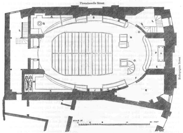 "In Love Lane," says worthy Strype, "on the north-west corner, entering into Little Eastcheap, is the Weigh-house, built on the ground where the church of St. Andrew Hubbard stood before the fire of 1666. Which said Weigh-house was before in Cornhill. In this house are weighed merchandizes brought from beyond seas to the king's beam, to which doth belong a master, and under him four master porters, with labouring porters under them. They have carts and horses to fetch the goods from the merchants' warehouses to the beam, and to carry them back. The house belongeth to the Company of Grocers, in whose gift the several porters', &c., places are. But of late years little is done in this office, as wanting a compulsive power to constrain the merchants to have their goods weighed, they alleging it to be an unnecessary trouble and charge."