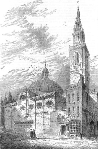 The original Church of St. Magnus, London Bridge, was of great antiquity; for we learn that in 1302 Hugh Pourt, sheriff of London, and his wife Margaret, founded a charity here; and the first rector mentioned by Newcourt is Robert de St. Albano, who resigned his living in 1323. It stood almost at the foot of Old London Bridge; and the incumbent of the chapel on the bridge[Pg 1176] paid an annual sum to the rector of St. Magnus for the diminution of the fees which the chapel might draw away. Three Lord Mayors are known to have been buried in St. Magnus'; and here, in the chapel of St. Mary, was interred Henry Yevele, a freemason to Edward III., Richard II., and Henry IV. This Yevele had assisted to erect the bust of Richard II. at Westminster Abbey between the years 1395-97, and also assisted in restoring Westminster Hall. He founded a charity in this church, and died in 1401. In old times the patronage of St. Magnus' was exercised alternately by the Abbots of Westminster and Bermondsey; but after the dissolution it fell to the Crown, and Queen Mary, in 1553, bestowed it on the Bishop of London. In Arnold's "Chronicles" (end of the fifteenth century) the church is noted as much neglected, and the services insufficiently performed. The ordinary remarks that divers of the priests and clerks spent the time of Divine service in taverns and ale-houses, and in fishing and "other trifles."