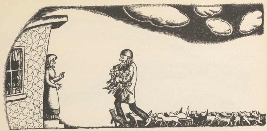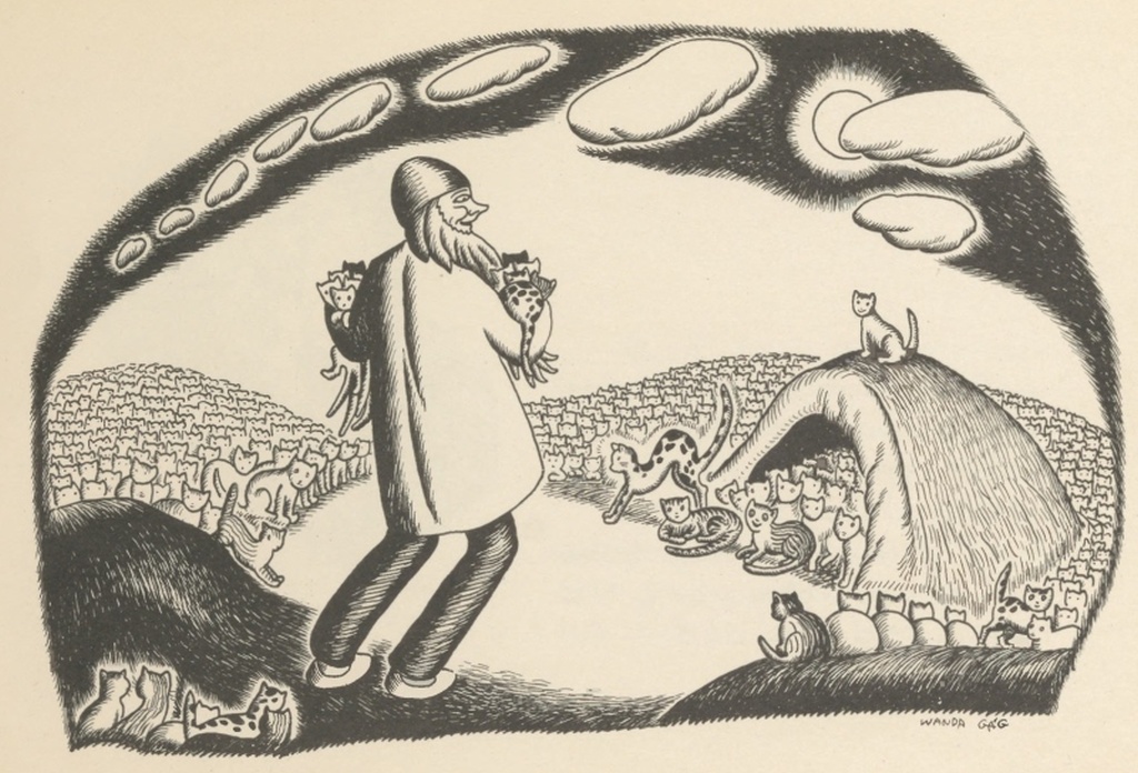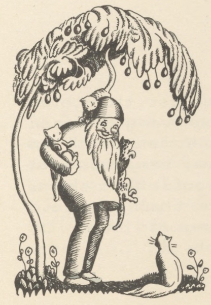 So it happened that every time the very old man looked up, he saw another cat which was so pretty he could not bear to leave it, and before he knew it, he had chosen them all.