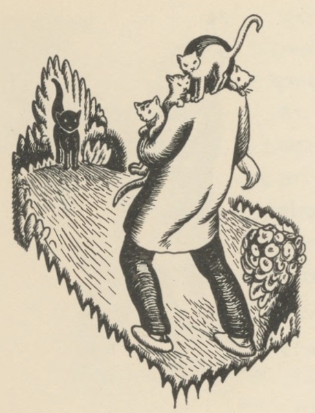 And so he went back over the sunny hills and down through the cool valleys, to show all his pretty kittens to the very old woman.