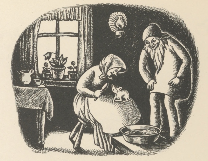 Once upon a time there was a very old man and a very old woman. They lived in a nice clean house which had flowers all around it, except where the door was. But they couldn’t be happy because they were so very lonely.