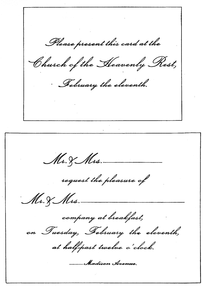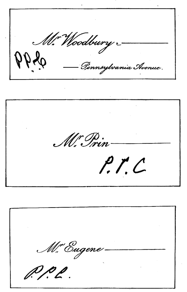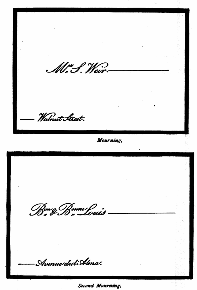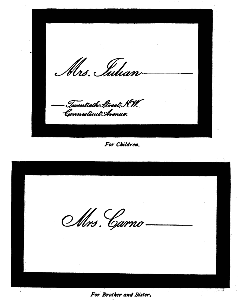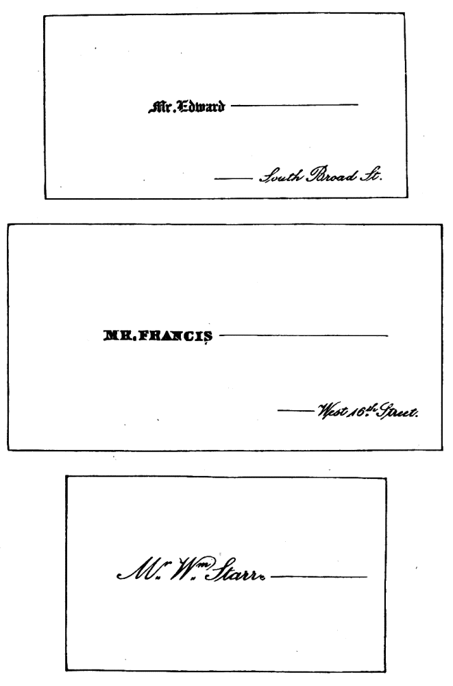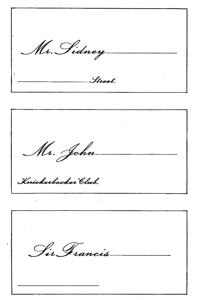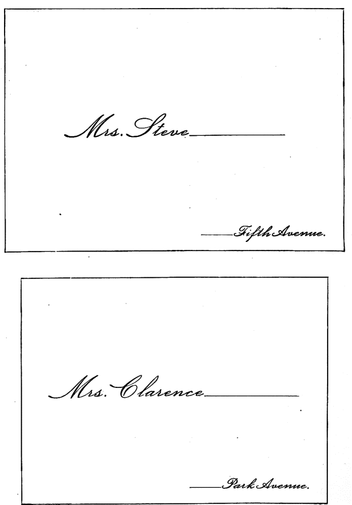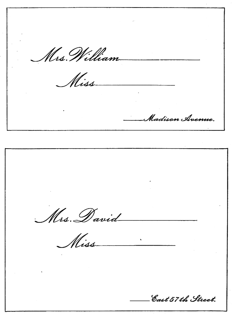 Assigning Guests at Dinner—The Boston fashion dying out—The approved Manner—Going in to Dinner—Time to be spent at table—Table Decoration—Too many Flowers in bad taste—Simplicity the best style—Queen Victoria’s table—Her Dinner served at 8.15, but she eats her best meal at 2 P.M.—Being late at Dinner a breach of good Manners—A Dinner acceptance a sacred Obligation—A Visite de digestion, | 291 |