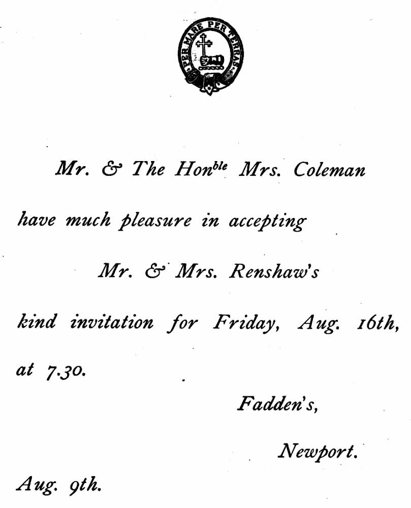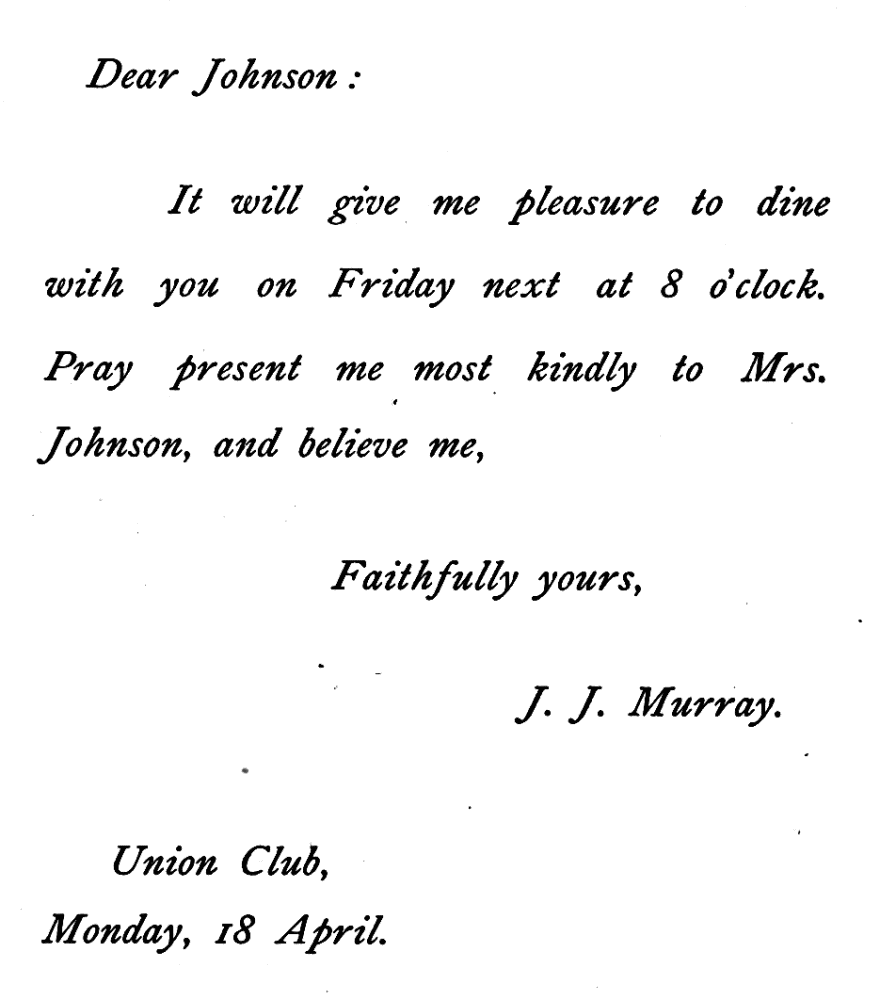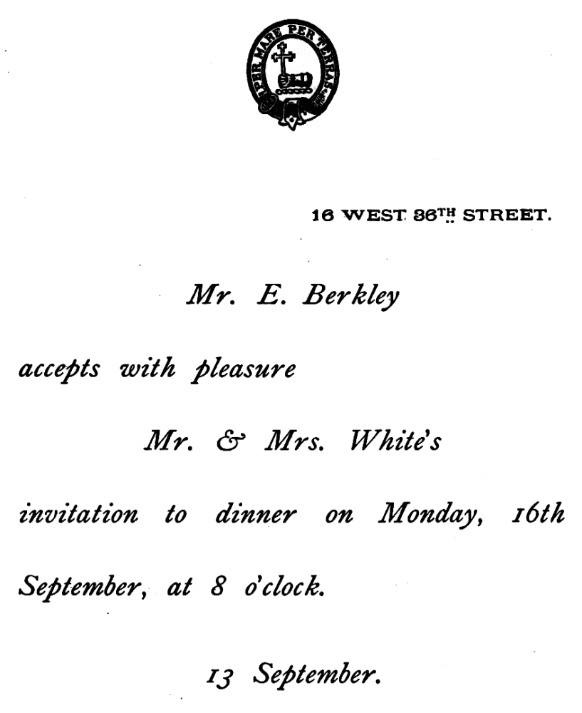 INFORMAL ACCEPTANCE OF INVITATION TO DINE.