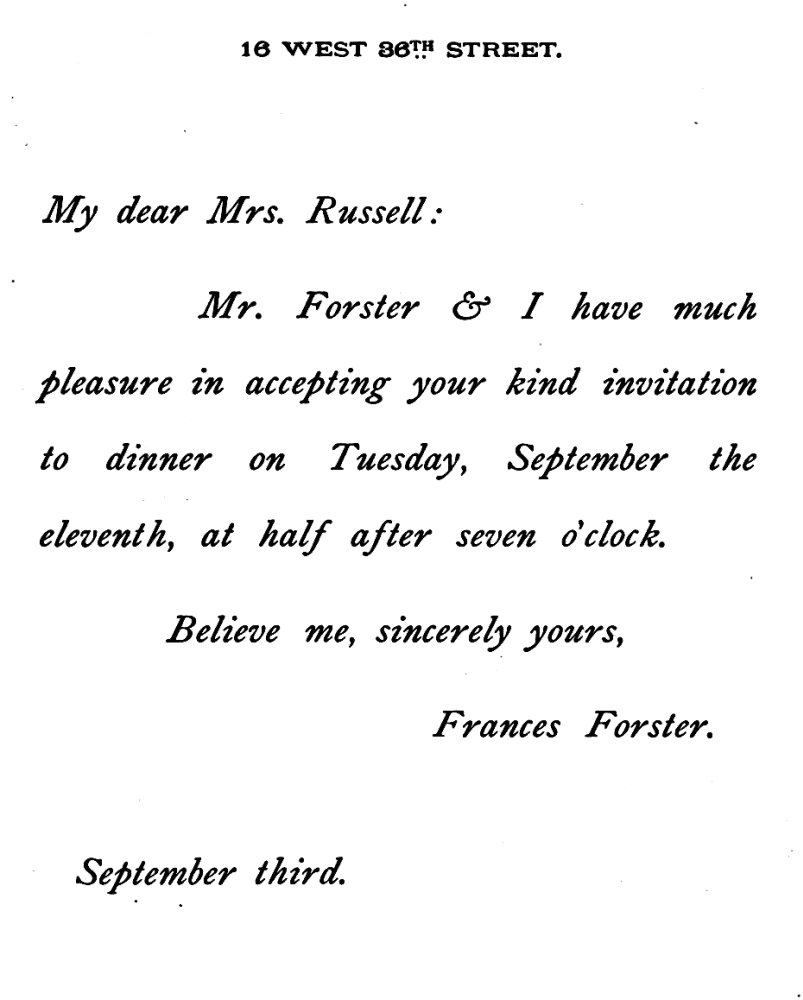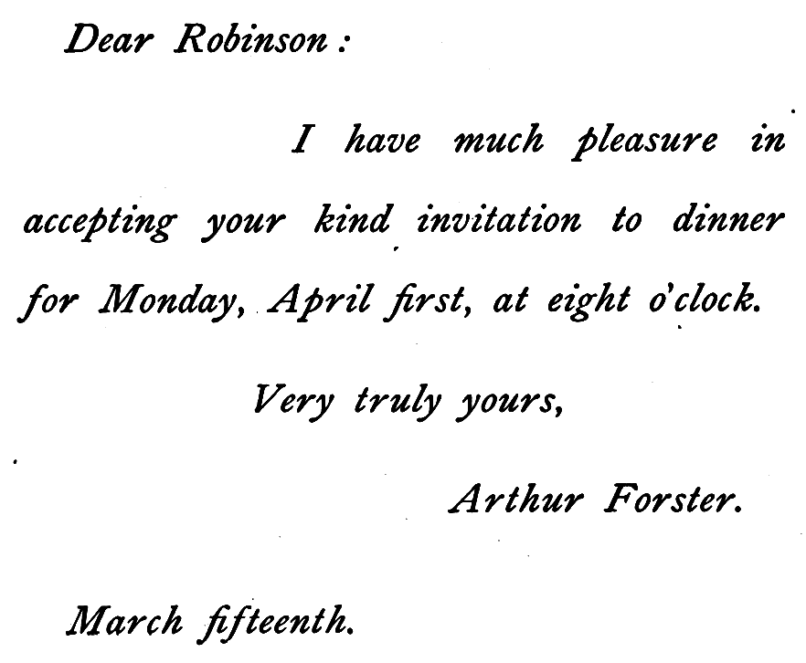 ANOTHER FORM OF AN INFORMAL ACCEPTANCE OF INVITATION TO DINNER.