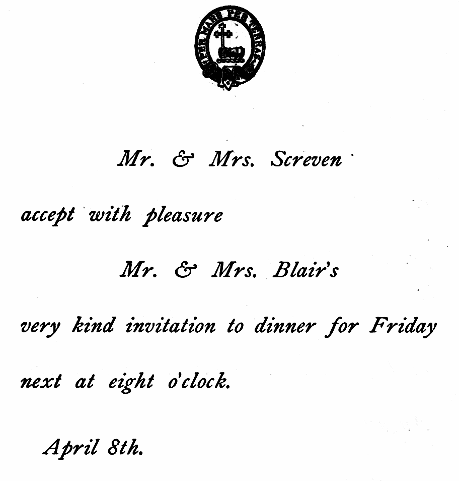 FORMAL INVITATION TO DINNER.