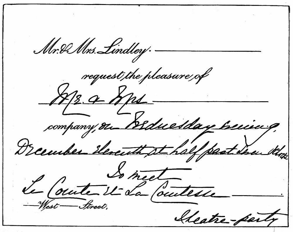 INFORMAL INVITATION TO THEATRE AND SUPPER.