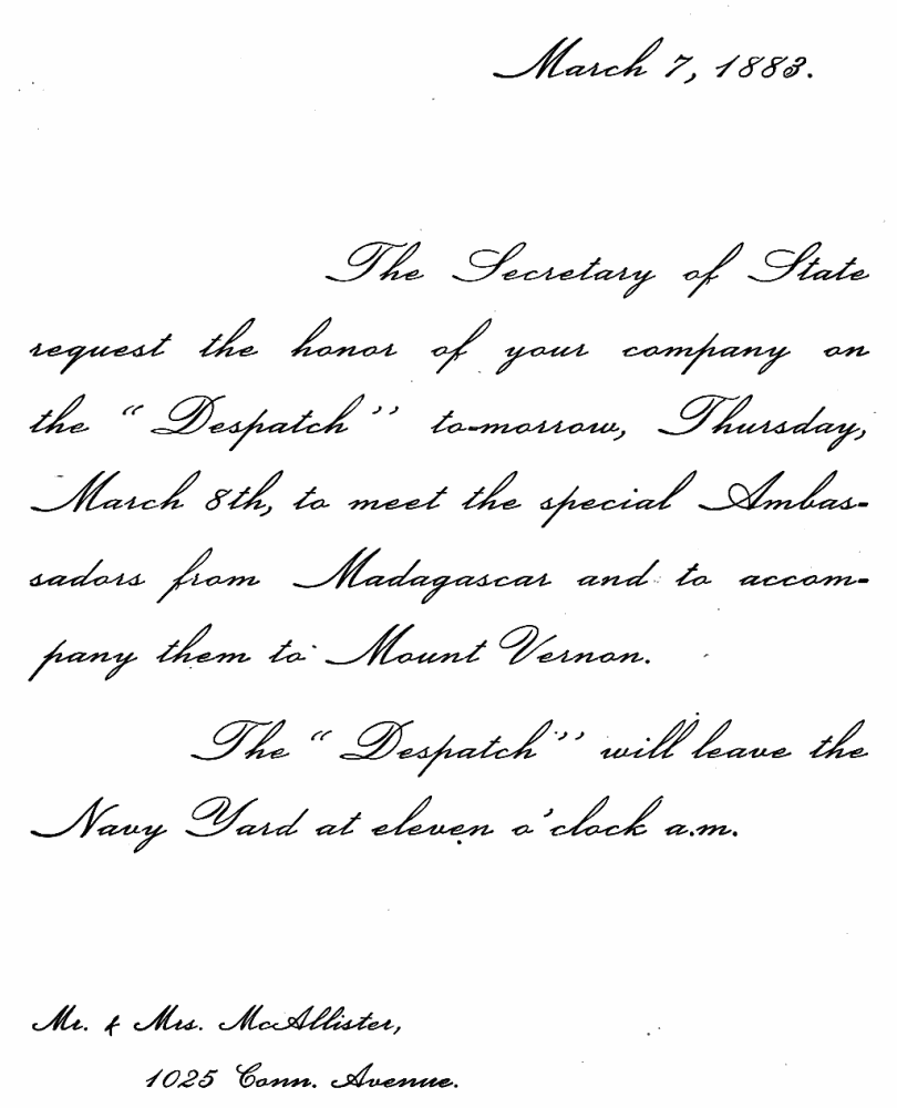 FORMAL INVITATION TO RECEPTION ON YACHT.