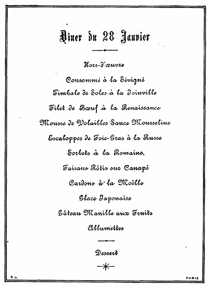 MENU OF THE SWAN BANQUET.