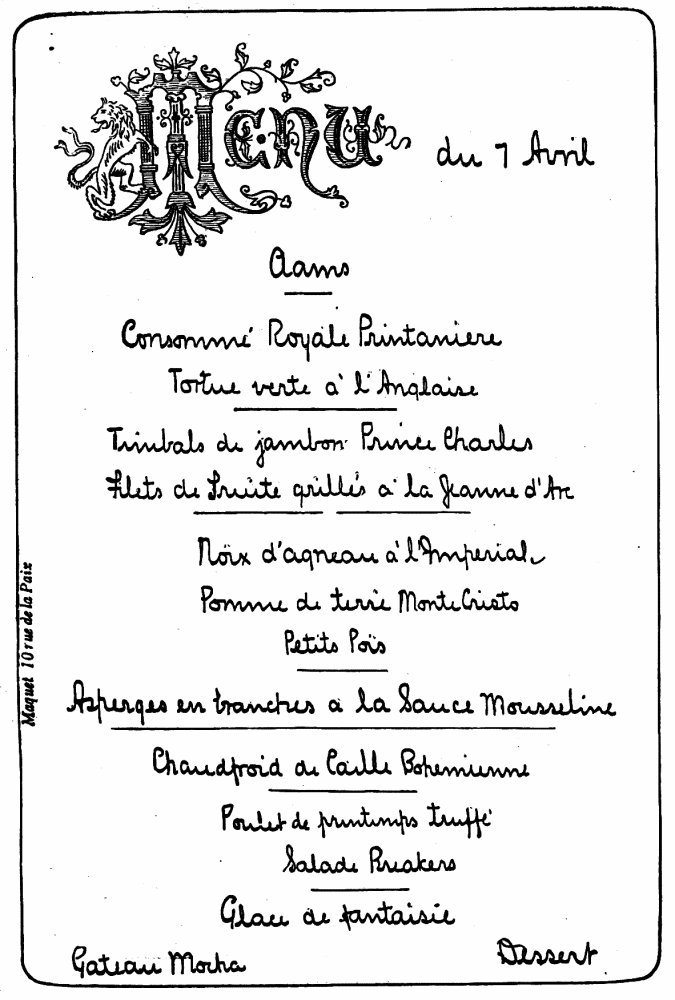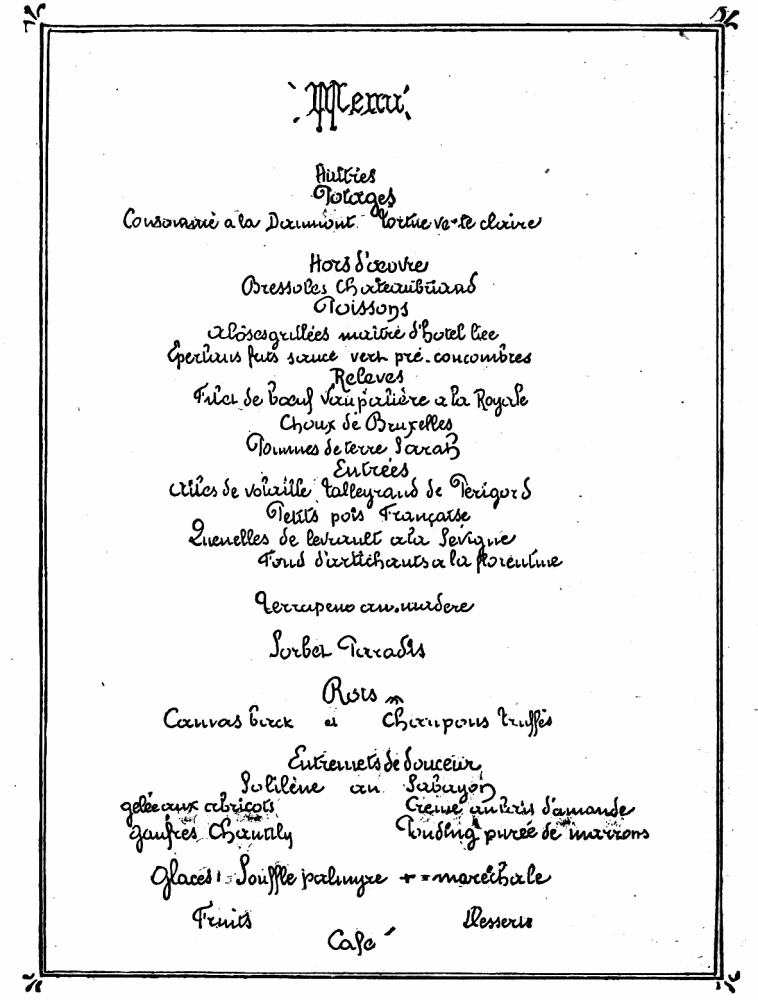 The original of this Menu is done in gold.