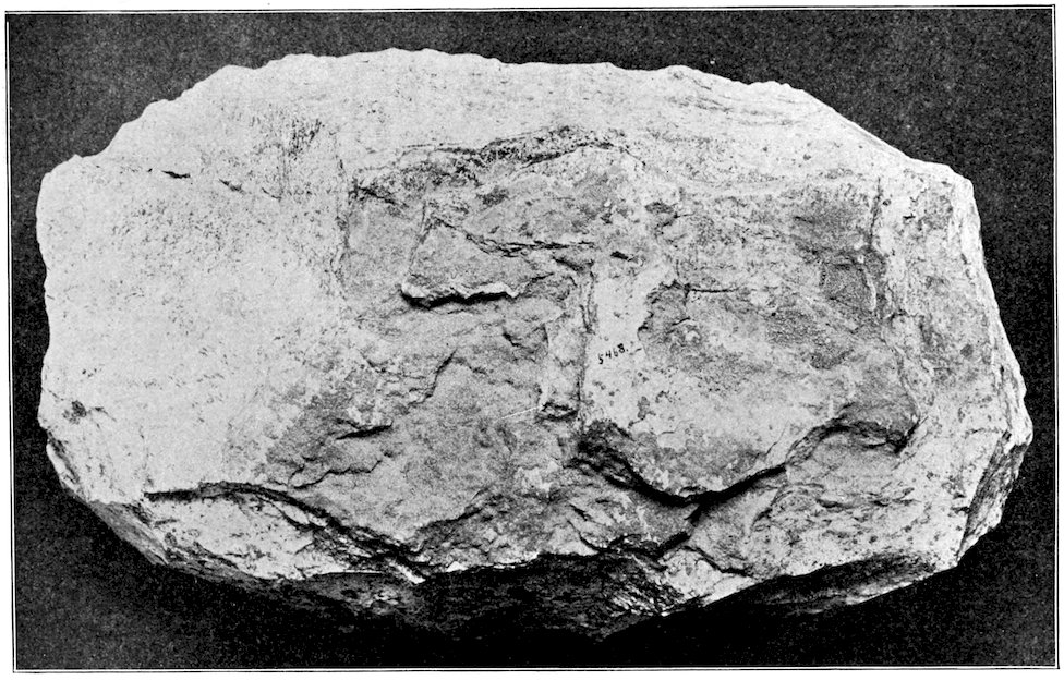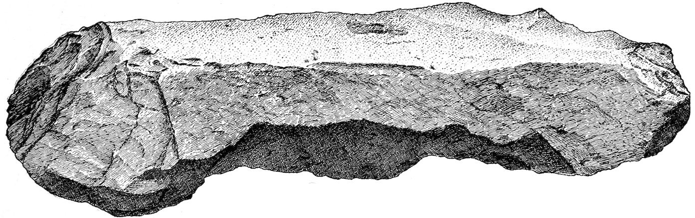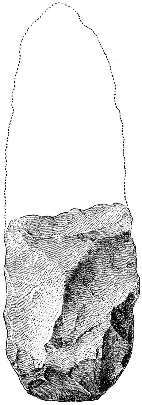 Fig. 2. A block of flint from a quarry in Indian Territory. (S. 1–2.) Phillips Academy collection. See Figs. 3, 7, 11, etc., for further reduction of this form.