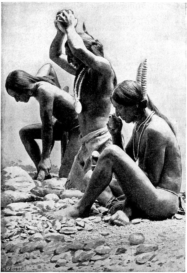 The aboriginal man was influenced by what he saw and heard in the world of nature surrounding him. His religion, folk-lore, daily life, and his entire being, were affected, modified, or directed by the primitive world,—that world of the forest, the plain, the air, and the waters. To study him aright we must cast aside our modern civilization, and if possible—and that is very difficult—place ourselves in his world. The Indian of to-day is not in that world. He hears his grandparents speak of the “buffalo days,” and that conveys some meaning to his mind. But he cannot go beyond the buffalo days; he knows nothing of the more interesting times preceding. He can tell you about the folk-lore of his tribe, yet he has no tradition of the first Spaniards, whether De Soto or Coronado, or others. Notwithstanding that these Spaniards traversed many Indian lands, and bore in their hands unheard-of weapons which made smoke and noise, and killed at a distance; that they were clad in iron suits, and were riding horses,—one hears little or nothing about it. Such scenes must have impressed Indians who had never beheld the like before, and one would imagine that there would be traditions handed down regarding these miraculous strangers, yet one reads in vain for any folk-lore relating to the coming of the Spaniards. This has always appeared to me as one of the arguments against the trustworthiness of folk-lore in matters of evidence as compared with that of archæology.