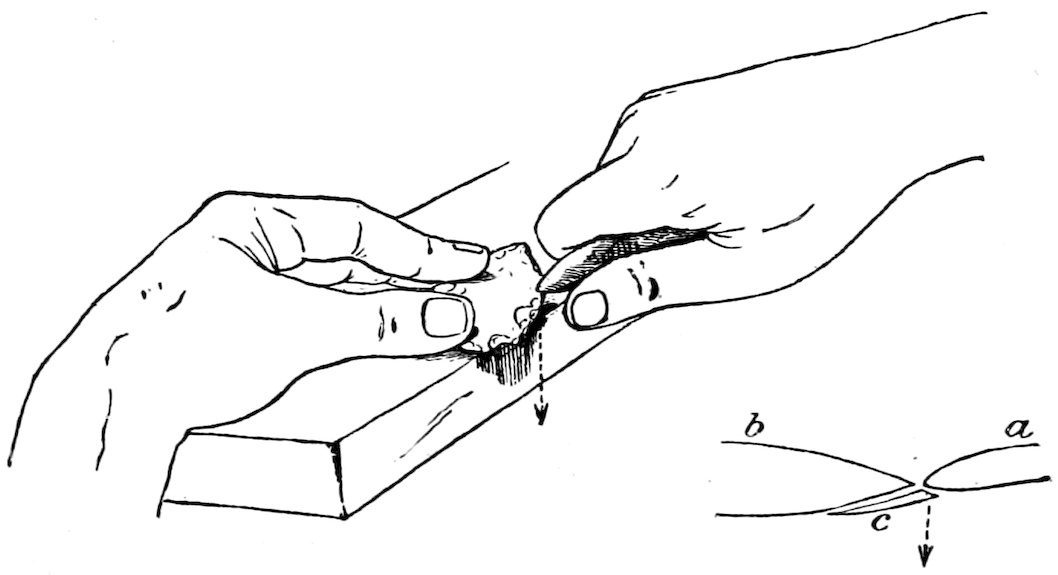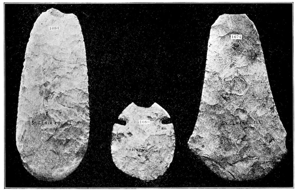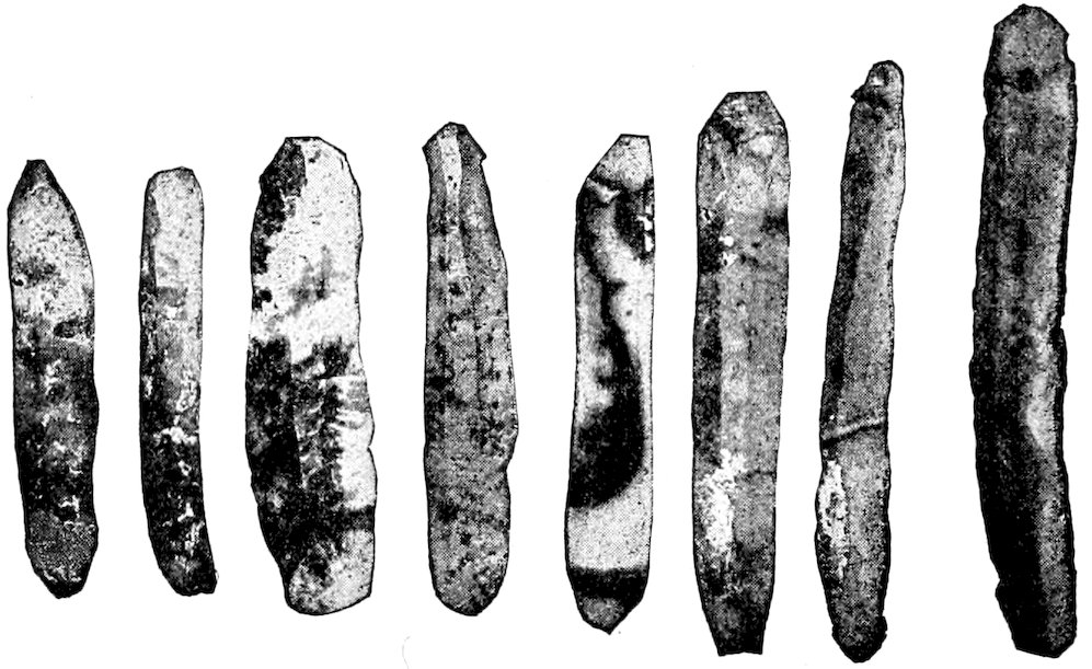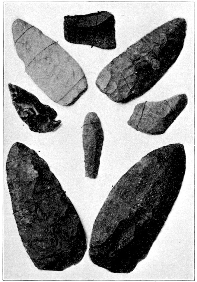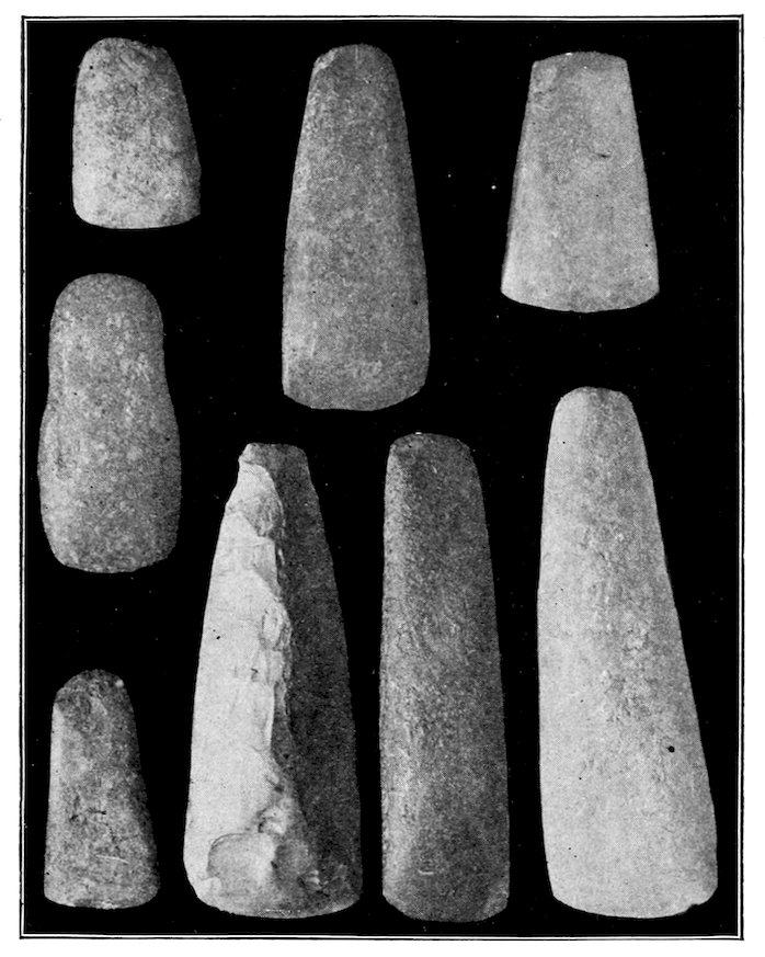 Dr. George L. Collie, Curator of the Logan Museum, Beloit, Wisconsin, kindly made for me a number of plates of interesting copper objects, striated axes, and other artifacts in his museum. He also furnished me with descriptions, and permitted me to republish portions of his paper entitled “Aboriginal Discrimination in the Selection of Material for Tools,” printed in volume VII, number 3, of the Wisconsin Archeologist. These and other gentlemen have been very kind to me and I appreciate their coöperation. That “The Stone Age” may be a success is largely due to the interest taken in it by my numerous correspondents.