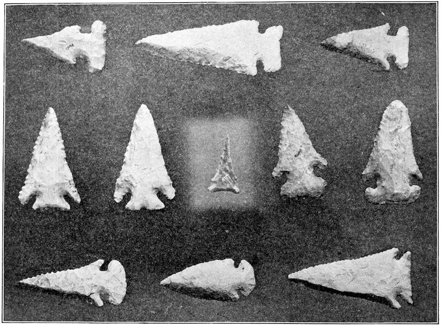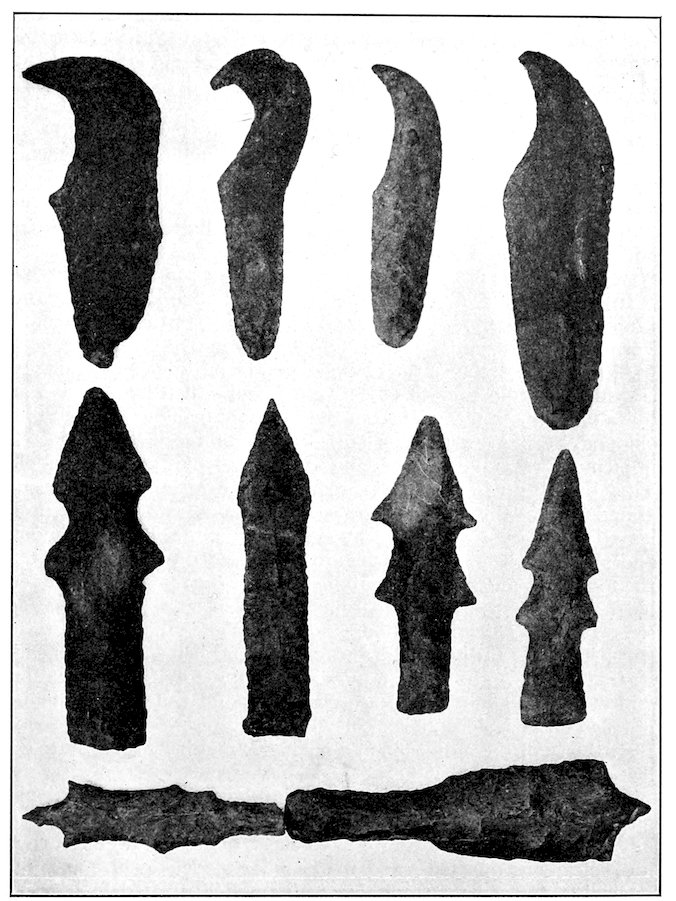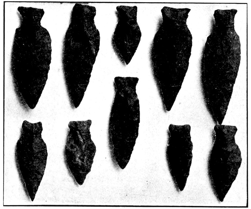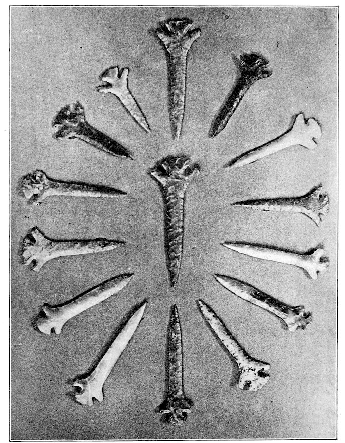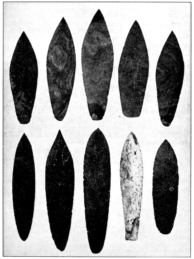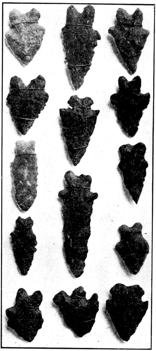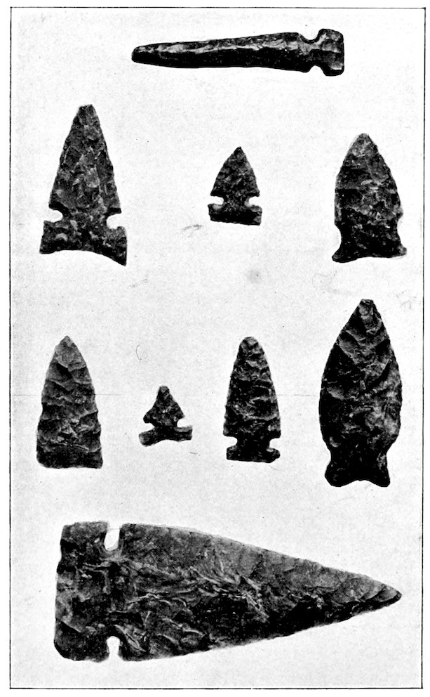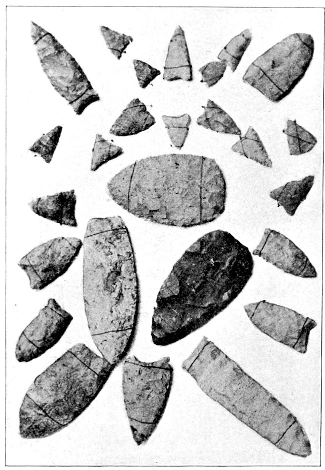 Mr. B. W. Arnold, of Albany, New York, sent me by express a portion of his collection, comprising some of the most beautiful projectile points and knives of semi-precious stone that it has ever been my privilege to examine. In order to emphasize the high workmanship and beauty of these points, Mr. Arnold had five colored plates made. Color reproductions and photogravures do justice to the art of stone-age man. I am particularly indebted to both Messrs. Graves and Arnold for their kindness in making possible these fine plates.