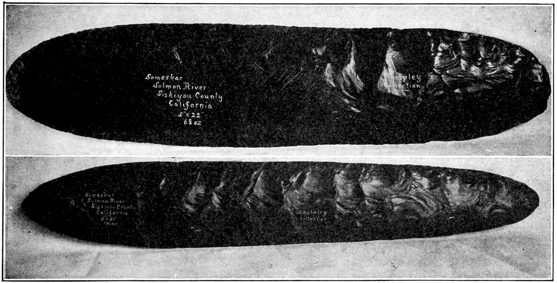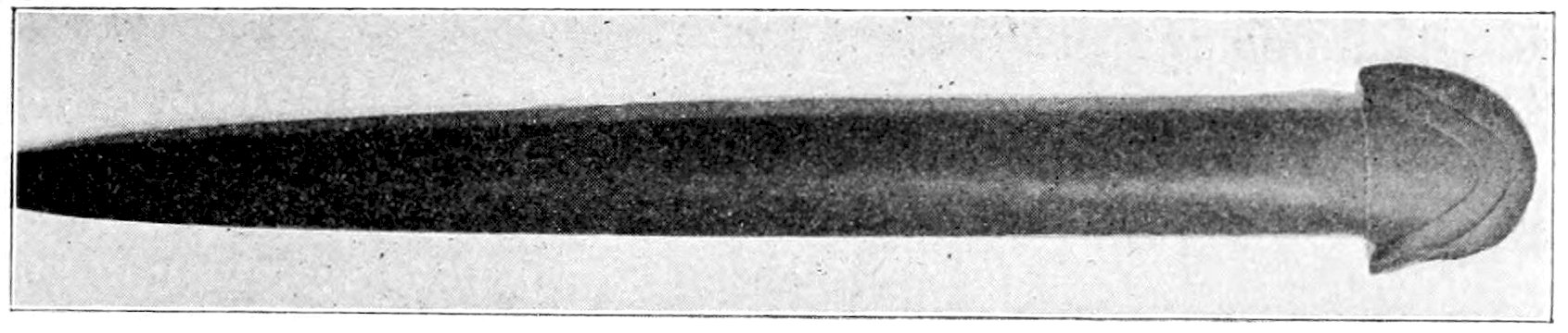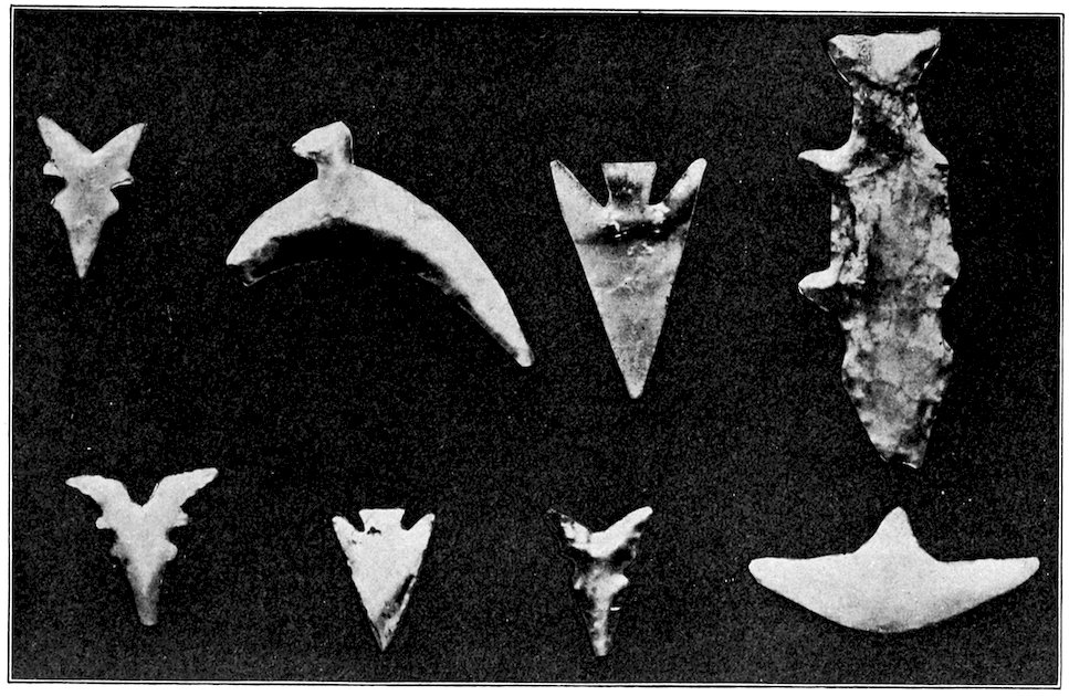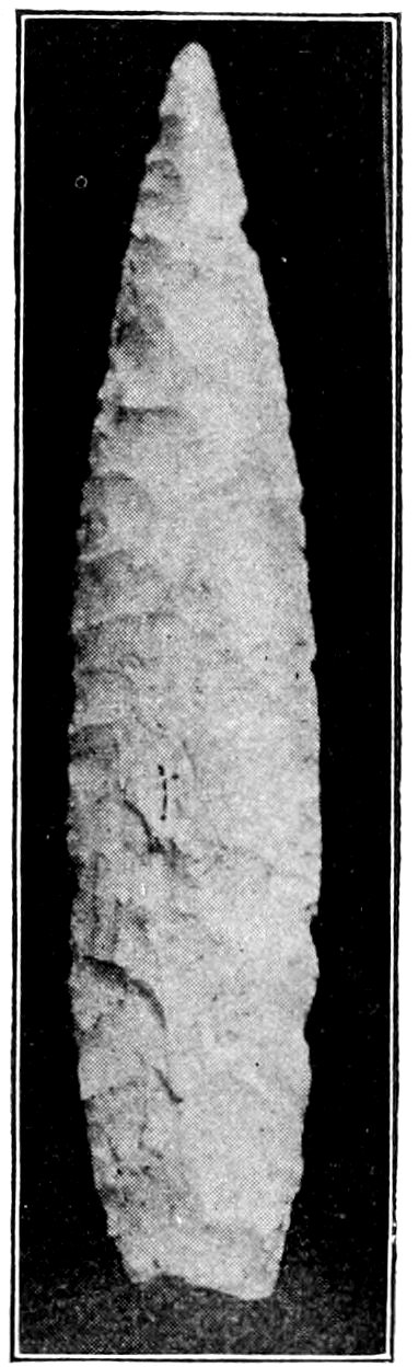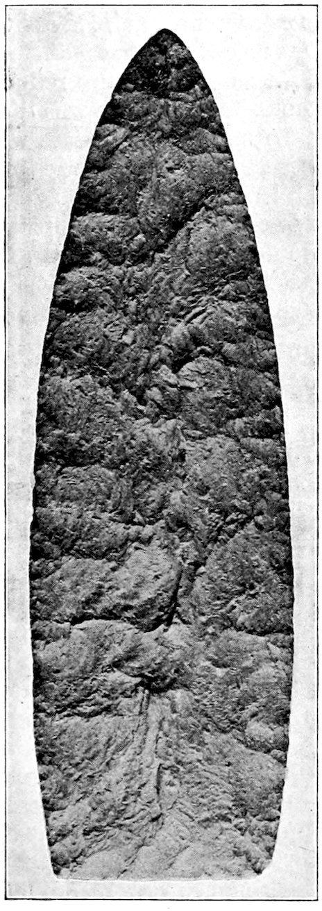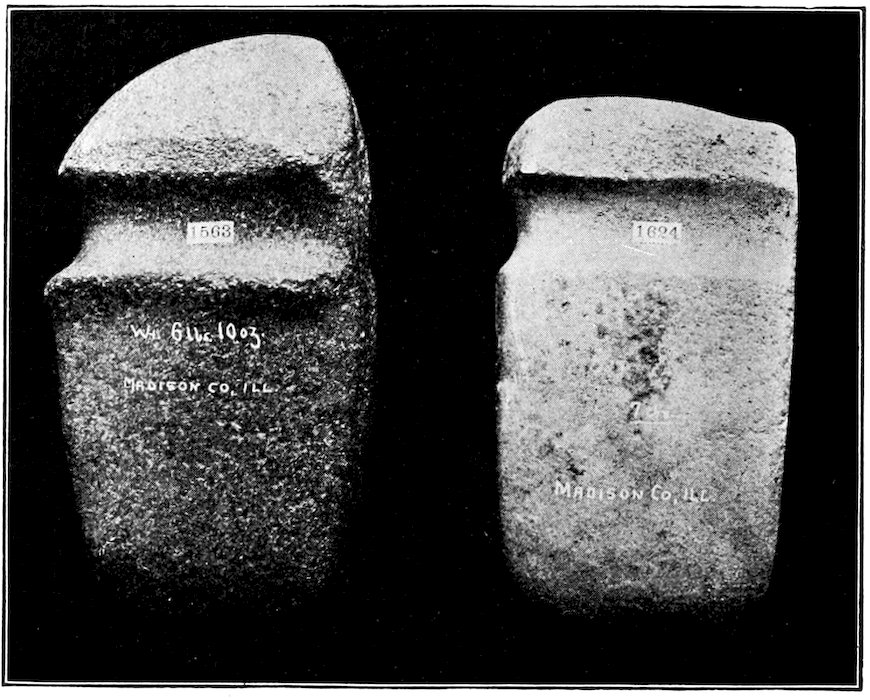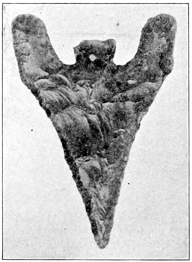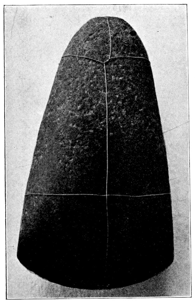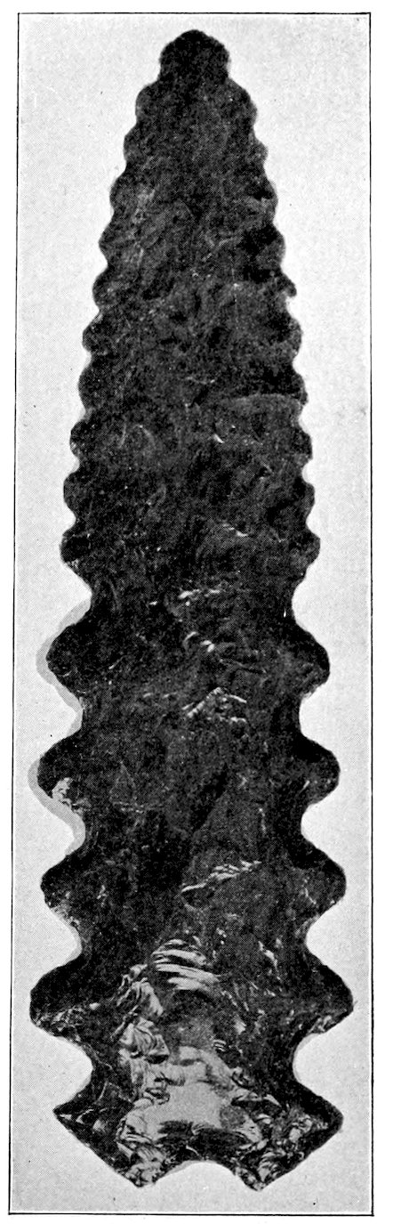 In the “Handbook” the writers have concentrated their attention upon the life of the American Indian as seen through the eyes and conceived by the brains of those familiar with Indian history of the past two centuries. Under various citations are axes, arrows, copper objects, and other artifacts treated. But these must be necessarily brief, excellent though they are. And I speak in no hostile criticism whatsoever in stating that the “Handbook of American Indians” could not take up these subjects in detail. While I highly recommend the “Handbook of American Indians,” I am persuaded that the life of the Indian of to-day is influenced by his contact with the white people; that he has drifted far away from Stone-Age times; that while there were examples of real aboriginal culture to be found in America during the past century, yet the great bulk of the natives of this country passed out of the Stone Age with the advent of the French into Canada, the Spaniards into the South, and the Puritans into New England. It seems to me that the study of all these learned individuals, the results of which are set forth in the Indian “Handbook,” has led many of them to consider prehistoric life in America as nearly the same as the life of our Indians for the past one or two centuries. I cannot believe that the arts of the past are the same to any appreciable extent as those which obtained at the time of the Lewis and Clark expedition, and I am convinced that the tribes living at the time of Lewis and Clark practiced arts which are to-day, if not extinct, at least greatly inferior to those of ancient times. Furthermore, I do not believe that the ceremonies practiced by the tribes of to-day are of special value in measuring or understanding prehistoric life.