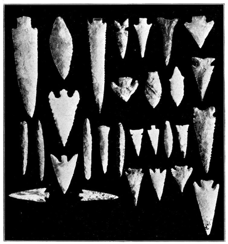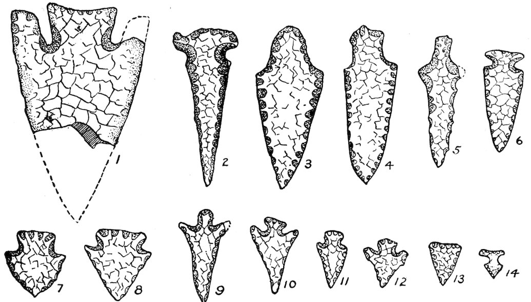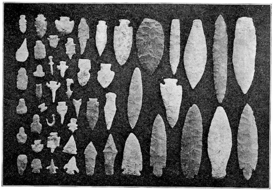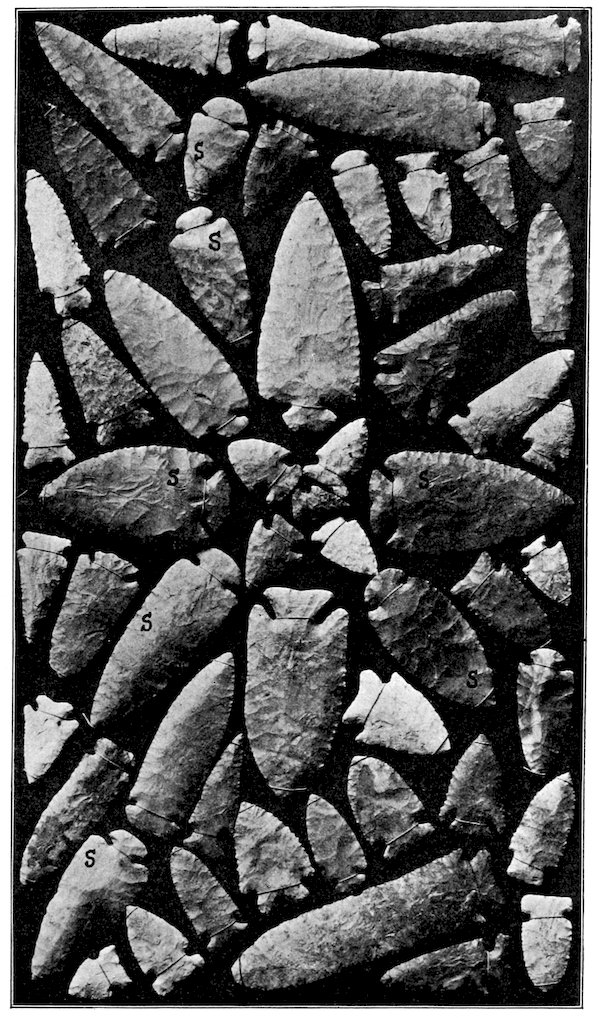 It is well to emphasize the fact that “The Stone Age” is a classification of man’s handiwork. It is not a work relating to cultures, although remarks as to the culture and relation of tribes are suggested frequently by certain types of specimens. And the cultures I describe are ancient cultures, not modern. The linguistic map compiled by Major Powell, and the “Handbook of American Indians” present the habitations of existing tribes and their customs, far better and more comprehensively than could I. The Sioux, the Cherokees, the Iroquois (or any one of a score of tribes), may occupy the same region to-day that other and extinct bands of red men claimed for their own centuries ago, and the artifacts found therein may or may not be comparable with those made and used by the present inhabitants of the section. It is these older things and cultures to which I would confine “The Stone Age.”