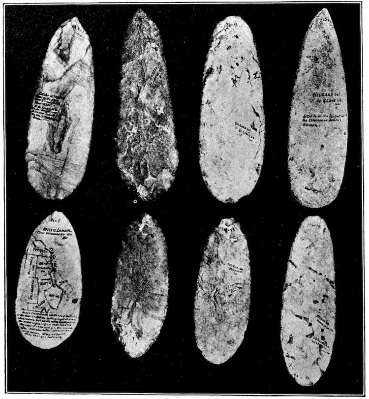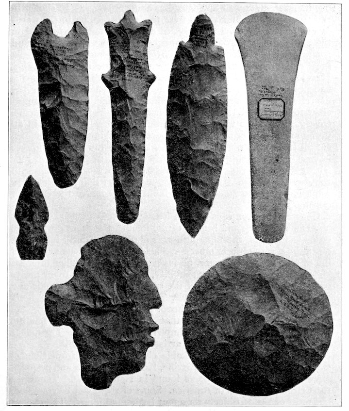 Colonel Bennett H. Young, of Louisville, Kentucky, has made for me about fifty half-tones of type-specimens in bone, shell, clay, and stone which he used in his work “Prehistoric Men of Kentucky,” and also in “Discoveries in Kentucky Caves,” just published. Mr. F. P. Graves, of Doe Run, Missouri, a friend of mine for more than twenty years, made eight photogravure plates of the best specimens in his collection and presented these for use in “The Stone Age.”