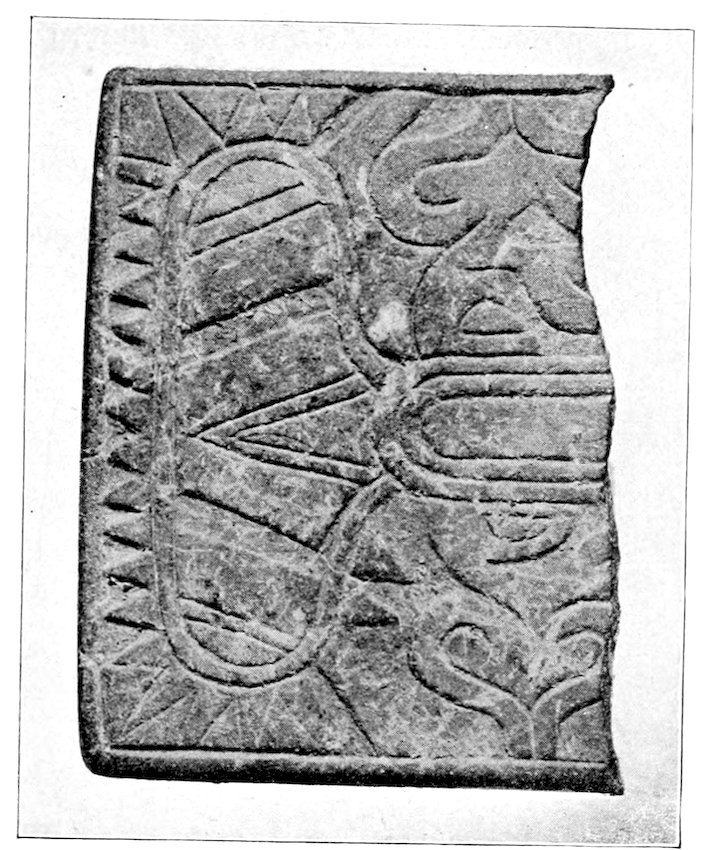 Mr. Moore states: “The universal presence of paint upon these discs and slabs seems to offer a clue to the purpose for which they were used, and, until a better suggestion is offered, we shall consider them palettes for the mixing of paint.”