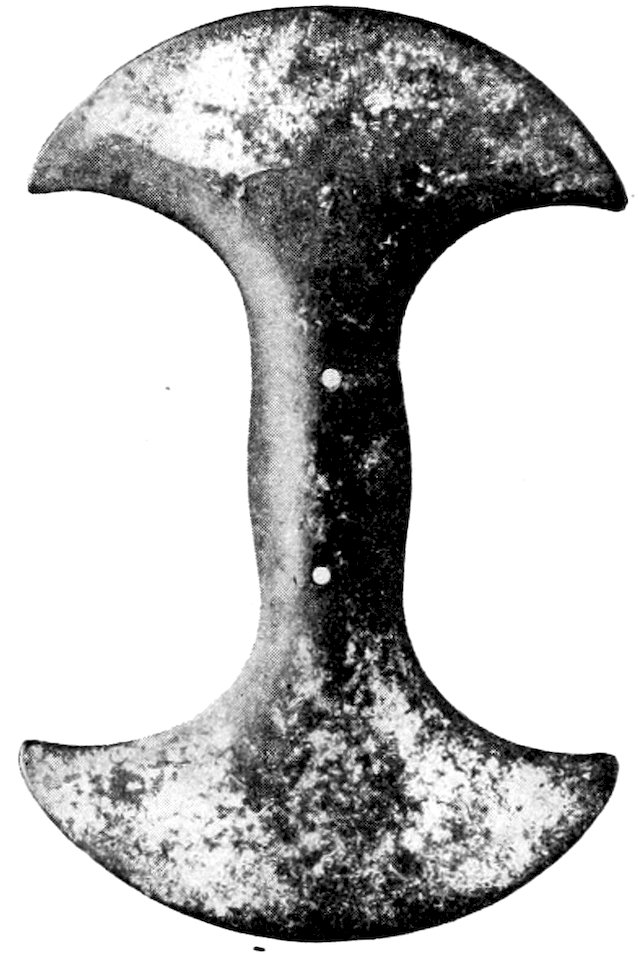Some years ago, Dr. J. F. Snyder coined the term “bicave,” or “twice hollowed,” as applying to these. He contended that the term “discoidal” was meaningless. I have always adopted his new word, and those who have not liked it have not offered convincing reasons for disregarding the term. It is possible for Latin scholars to coin many concise words to describe certain objects, and these words would convey precise meaning. This is done in palæontology, geology, and all other branches of science, and there is no reason why it should not be followed in archæology. The arguments to the contrary savor of pedantry.