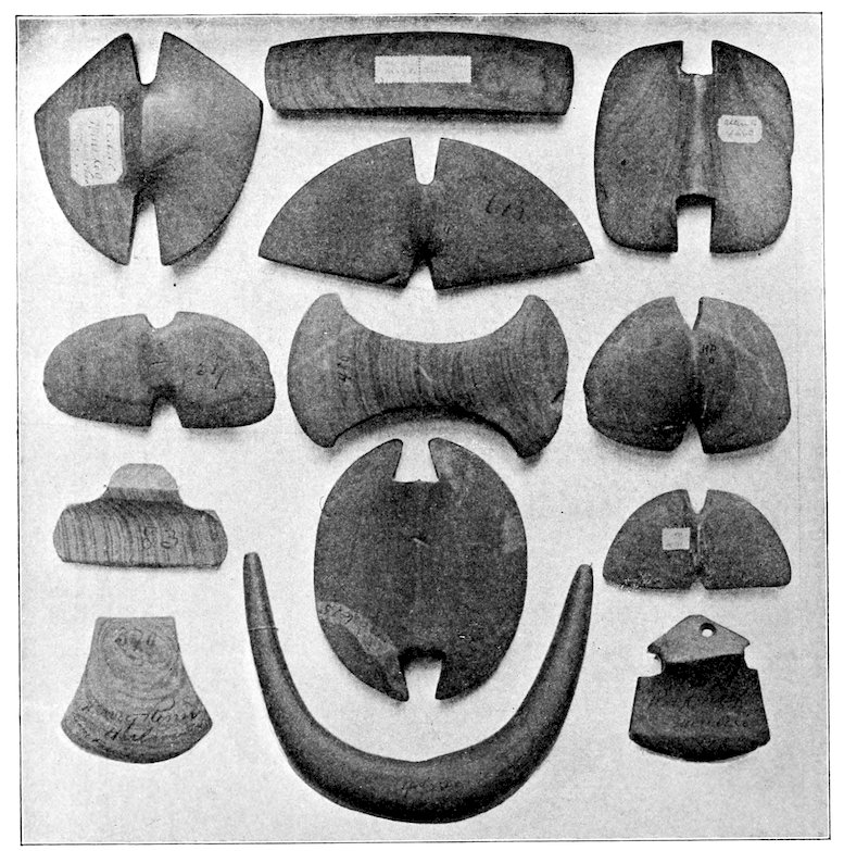 After deliberation I concluded to describe the implements, ornaments, and utensils of North America according to class or type rather than by locality. The several scholars who had aided me in this work and to whom I am under the greatest of obligations are therefore given credit in their several places. This was a better plan, and all of my observations are so grouped.