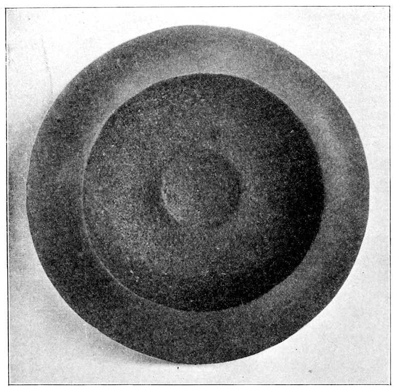 Fig. 391 is a remarkable object with a slightly depressed top, and with the central depression plainly marked. Around this central depression is a rim.