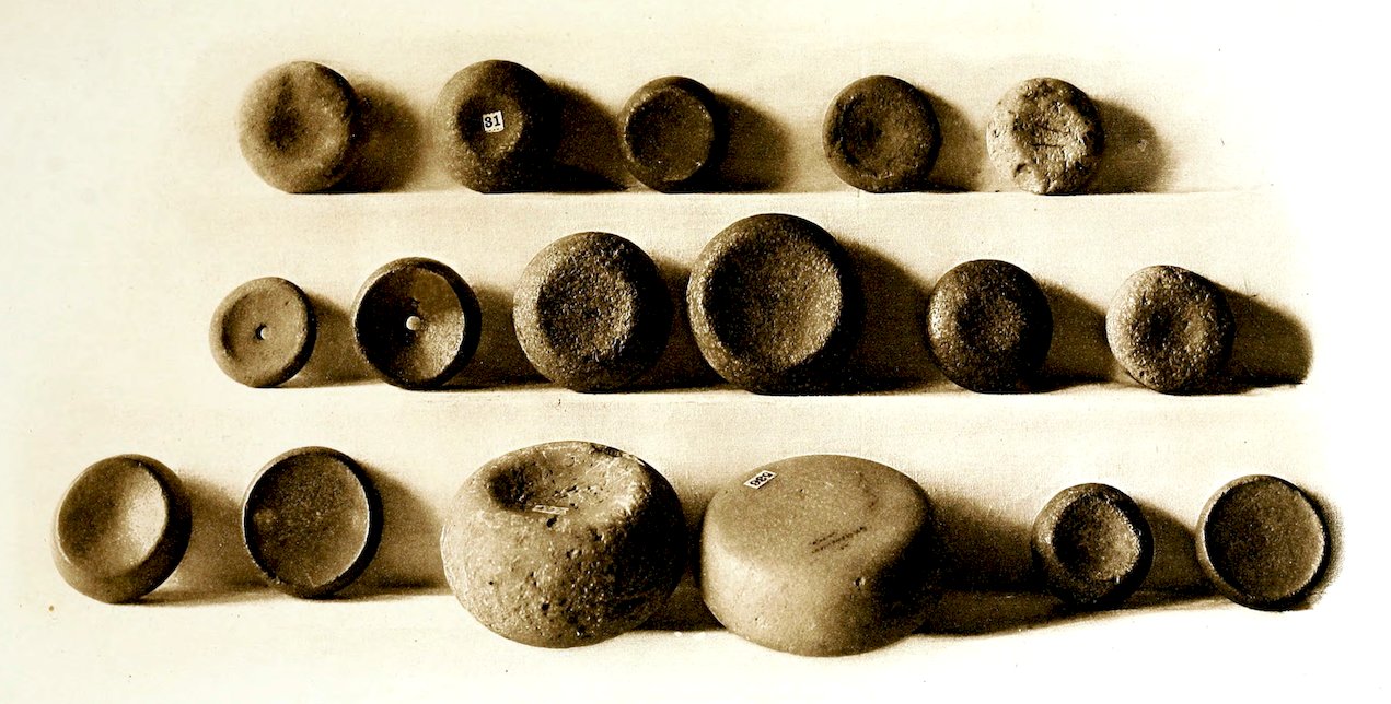 There are many flat, thin discs of both stone and clay found throughout the United States. These could not be called bicaves, because they are not twice hollowed. But they mark the beginning of that form.