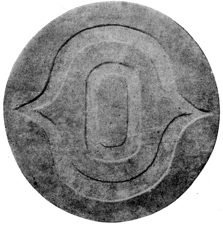 Fig. 393 A (S. 1–3.) Engraved discs from Arkansas Post, Arkansas. H. L. Stoddard’s collection.
