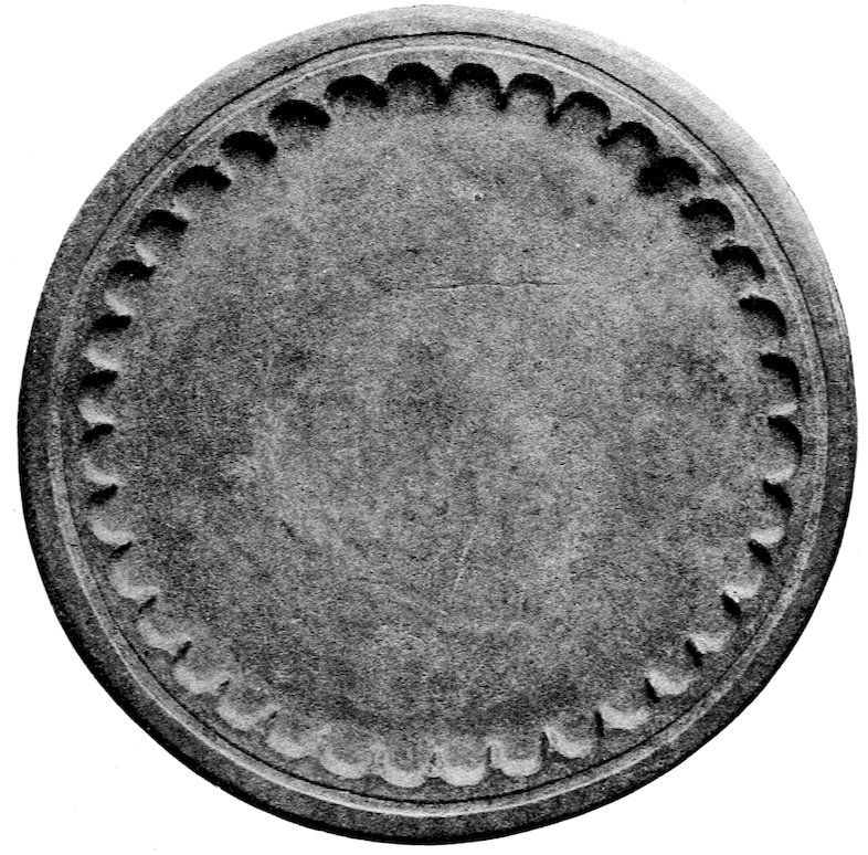 These stone discs were found in considerable numbers by Mr. Clarence B. Moore at Moundville, Black Warrior River, Alabama. He figures several of them in “Certain Aboriginal Remains on the Black Warrior River” (Philadelphia, 1905).