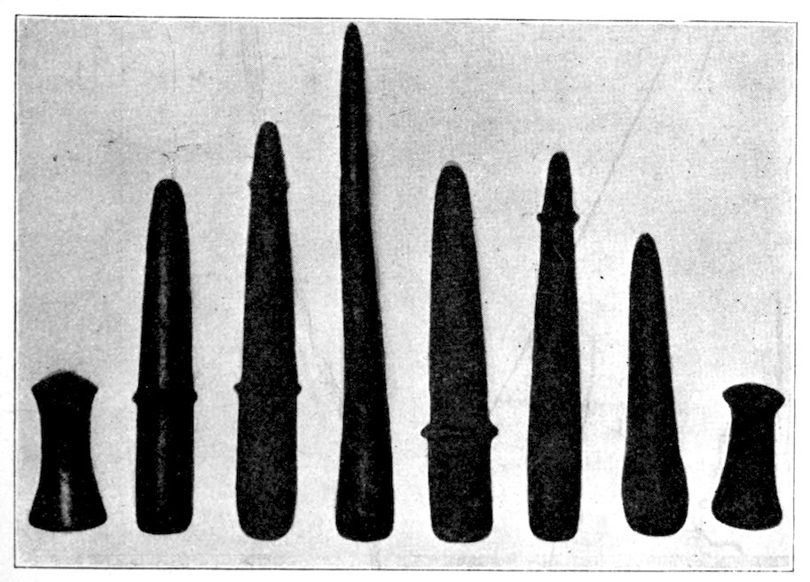 8Figs. 399, 400, 401, and the central object in Fig. 269 are all unfinished bird-stones. It was difficult for me to procure these, but after some years of correspondence they were obtained.