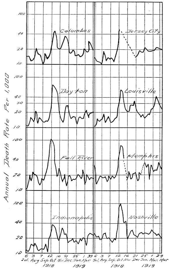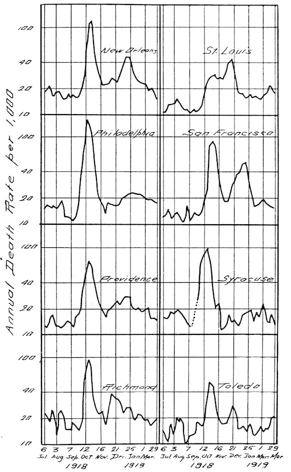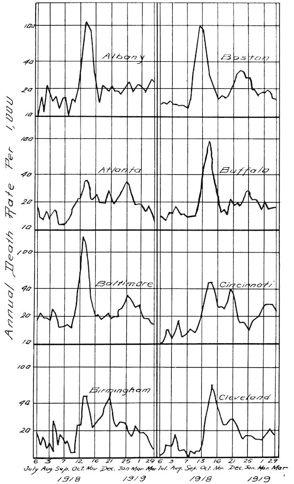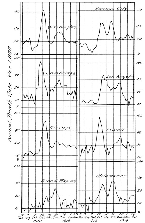 1919. On certain general statistical aspects in the 1918 epidemic in American cities. Public Health Reports, Aug. 8, 1919.