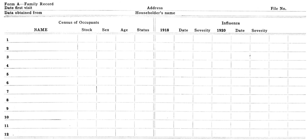 Form A.—Household record, used in Boston influenza census. (See page 127.)