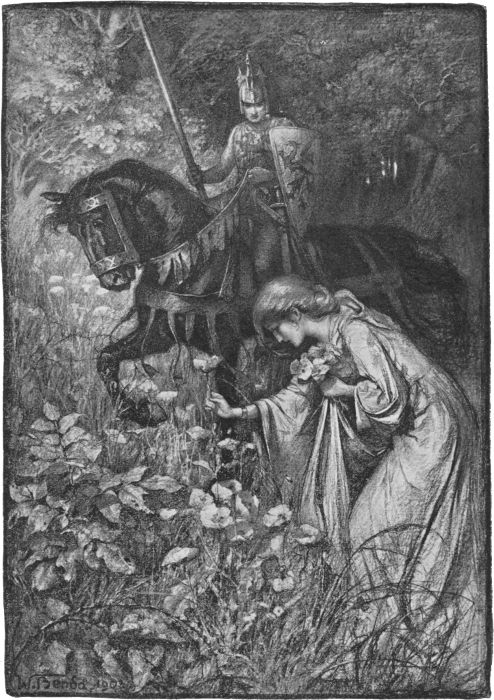 “She came to us, sire, here in this valley, a tall lady, with golden hair loose upon her neck. Her feet were bare and bleeding, her robe rent with thorns. And as she came, she sang wild snatches, such as tell of love. We took her, sire, and gave her meat and drink, bathed her torn feet, and gave her raiment. So, she abode with us, gentle and lovely, yet speaking like one who had suffered, even to death. And yet, even as we slept, she stole away from us last night, and now is gone.”