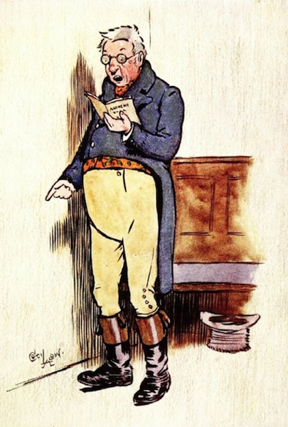 The usual services of the choir were managed tolerably well. But the great trial was an anthem that had been prepared and arranged by Master Simon, and on which he had founded great expectation. Unluckily there was a blunder at the very outset; the musicians became flurried; Master Simon was in a fever; everything went on lamely and irregularly until they came to a chorus beginning ‘Now let us sing with one accord,’ which seemed to be a signal for parting company: all became discord and confusion; each shifted for himself, and got to the end as well, or rather as soon, as he could, except one old chorister in a pair of horn spectacles bestriding and pinching a long sonorous nose; who, happening to stand a little apart, and being wrapped up in his own melody, kept on a quavering course, wriggling his head, ogling his book, and winding all up by a nasal solo of at least three bars’ duration.