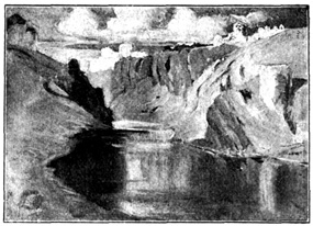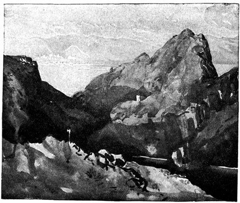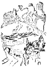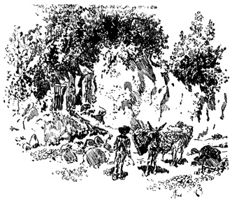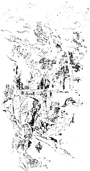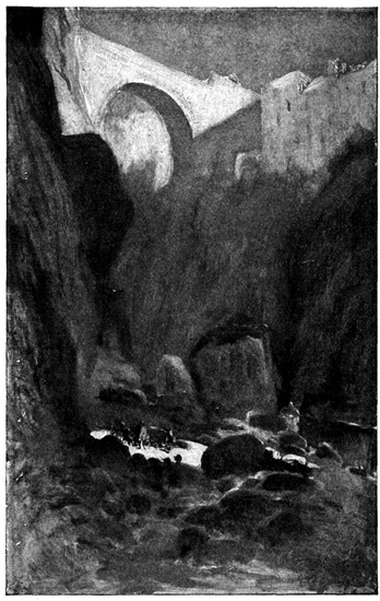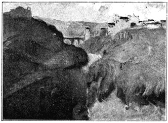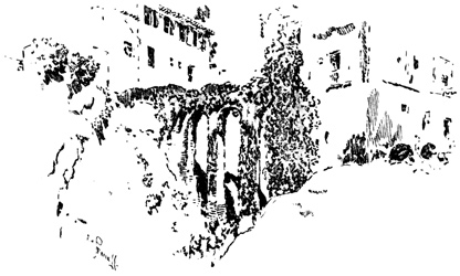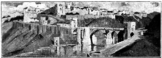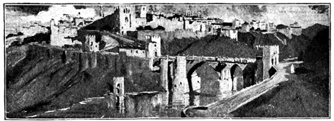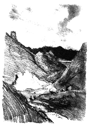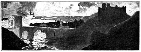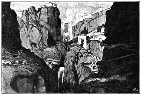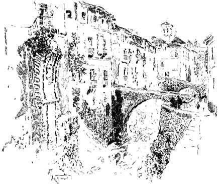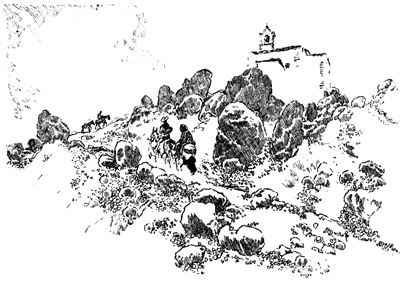 In the wild passes of these mountains the sight of walled towns and villages, built like eagles' nests among the cliffs, and surrounded by Moorish battlements, or of ruined watch-towers perched on lofty peaks, carries the mind back to the chivalric days of Christian and Moslem warfare, and to the romantic struggle for the conquest of Granada. In traversing these lofty sierras the traveller is often obliged to alight, and lead his horse up and down the steep and jagged ascents and descents, resembling the broken steps of a staircase. Sometimes the road winds along dizzy precipices, without parapet to guard him from the gulfs below, and then will plunge down steep and dark and dangerous declivities. Sometimes it struggles through rugged barrancos, or ravines, worn by winter torrents, the obscure path of the contrabandista; while, ever and anon, the ominous cross, the monument of robbery and murder, erected on a mound of stones at some lonely part of the road, admonishes the traveller that he is among the haunts of banditti, perhaps at that very moment under the eye of some lurking bandolero. Sometimes, in winding through the narrow valleys, he is startled by a hoarse bellowing, and beholds above him on some green fold of the mountain a herd of fierce Andalusian bulls, destined for the combat of the arena. I have felt, if I may so express it, an agreeable horror in thus contemplating, near at hand, these terrific animals, clothed with tremendous strength, and ranging their native pastures in untamed wildness, strangers almost to the face of man: they know no one but the solitary herdsman who attends 13 upon them, and even he at times dares not venture to approach them. The low bellowing of these bulls, and their menacing aspect as they look down from their rocky height, give additional wildness to the savage scenery.