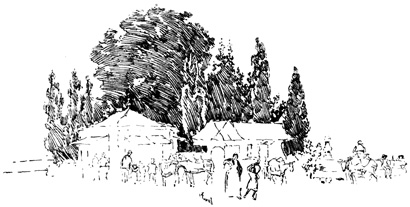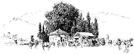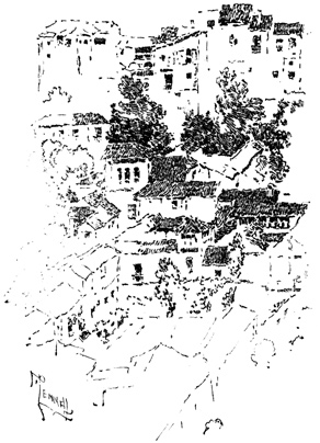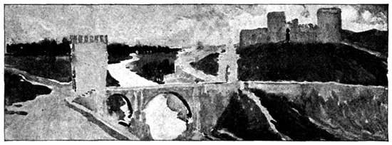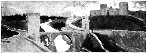 Thus equipped and attended, we cantered out of "Fair Seville city" at half-past six in the morning of a bright May day, in company with a lady and gentleman of our acquaintance, 15 who rode a few miles with us, in the Spanish mode of taking leave. Our route lay through old Alcala de Guadaira (Alcala on the river Aira), the benefactress of Seville, that supplies it with bread and water. Here live the bakers who furnish Seville 16 with that delicious bread for which it is renowned; here are fabricated those roscas well known by the well-merited appellation of pan de Dios (bread of God); with which, by the way, we ordered our man, Sancho, to stock his alforjas for the journey. Well has this beneficent little city been denominated the "Oven of Seville"; well has it been called Alcala de los Panaderos (Alcala of the bakers), for a great part of its inhabitants by lines of mules and donkeys laden with great panniers of loaves and roscas.