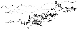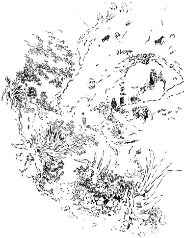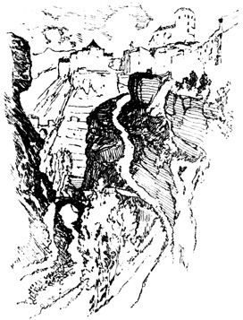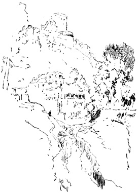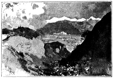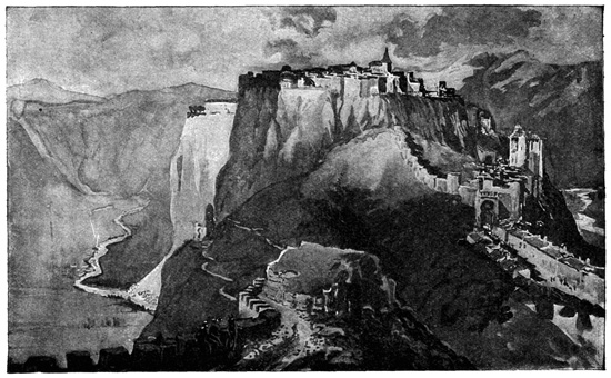 The ancient kingdom of Granada, into which we were about to penetrate, is one of the most mountainous regions of Spain. Vast sierras, or chains of mountains, destitute of shrub or tree, and mottled with variegated marbles and granites, elevate their sunburnt summits against a deep-blue sky; yet in their rugged bosoms lie ingulfed verdant and fertile valleys, where the desert and the garden strive for mastery, and the very rock is, as it were, compelled to yield the fig, the orange, and the citron, and to blossom with the myrtle and the rose. 12