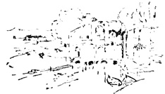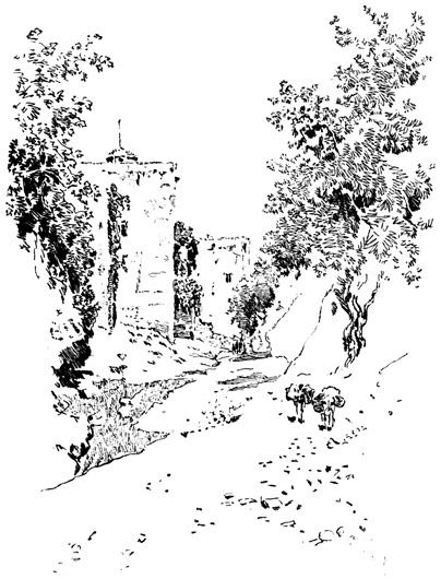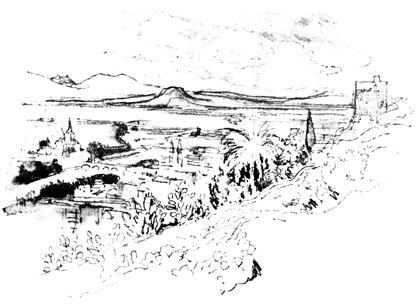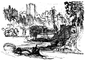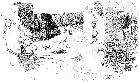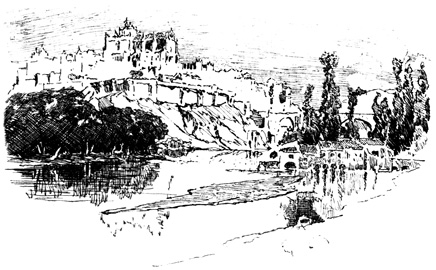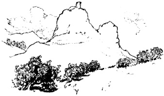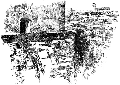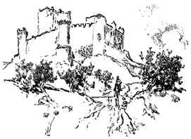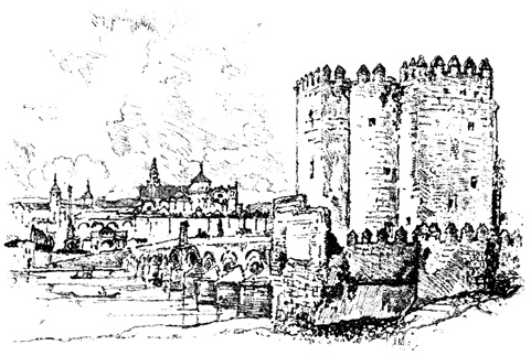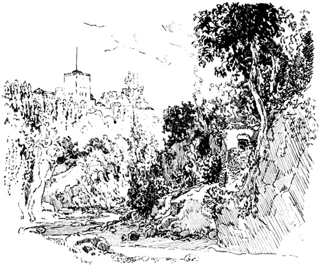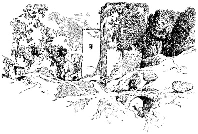 Here we halted for a time, at the ruins of the old Moorish 17 castle, a favourite resort for picnic parties from Seville, where we had passed many a pleasant hour. The walls are of great extent, pierced with loopholes; enclosing a huge square tower or keep, with the remains of masmoras, or subterranean granaries. The Guadaira winds its stream round the hill, at the foot of these ruins, whimpering among reeds, rushes, and pond-lilies, and overhung with rhododendron, eglantine, yellow myrtle, and a profusion of wild flowers and aromatic shrubs; while along its banks are groves of oranges, citrons, and pomegranates, among which we heard the early note of the nightingale.