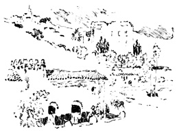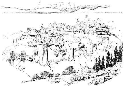 In the interior provinces the traveller occasionally traverses great tracts cultivated with grain as far as the eye can reach, waving at times with verdure, at other times naked and sunburnt, but he looks round in vain for the hand that has tilled the soil. At length he perceives some village on a steep hill, or rugged crag, with mouldering battlements and ruined watch-tower: a stronghold, in old times, against civil war, or Moorish inroad: for the custom among the peasantry of congregating together for mutual protection is still kept up in most parts of Spain, in consequence of the maraudings of roving freebooters. 4