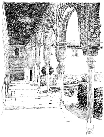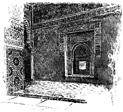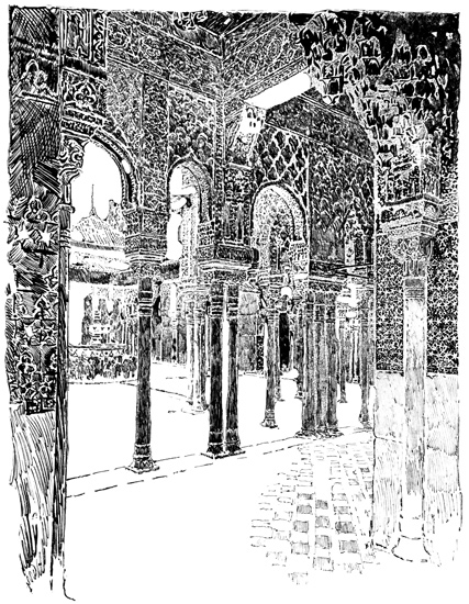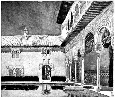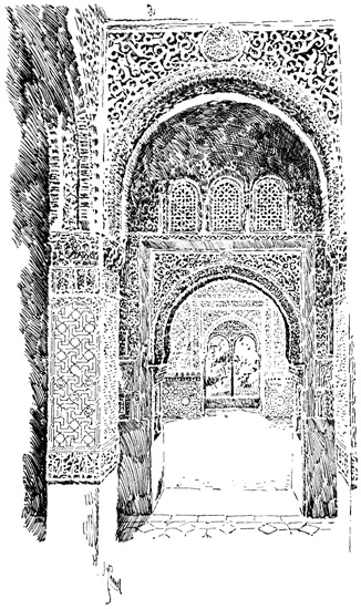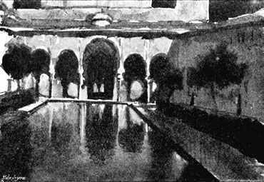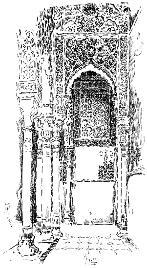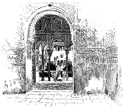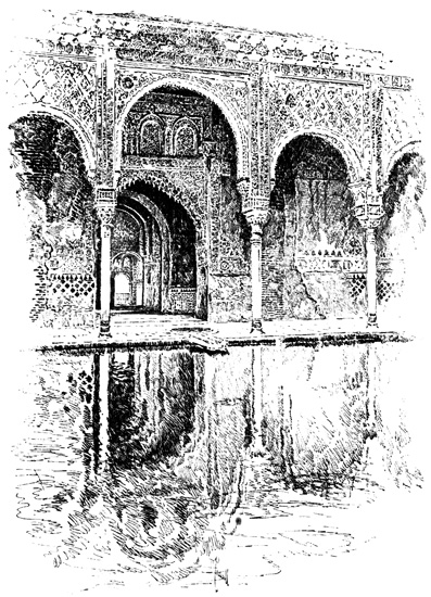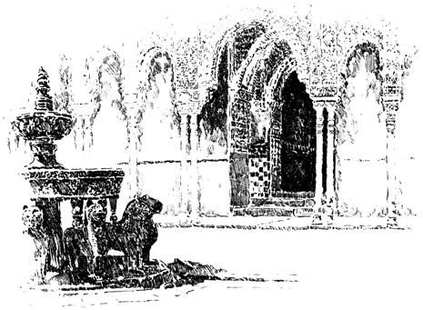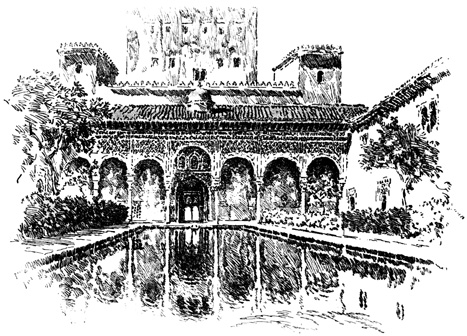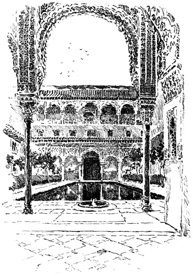 The Alhambra reveals but half its charm to the casual visitor. I know, of my own experience, how far custom is from staling its infinite variety, how its beauty increases as day by day one watches the play of light and shadow on its walls, as day by day one yields to the indolent dreams for which it was built. There was one summer when, all through July and August, its halls and courts gave me shelter from the burning, blinding sunshine of Andalusia, and the weeks in passing strengthened the spell that held me there. For Gautier, the place borrowed new loveliness from the one night he slept in the Court of Lions. But by day and night alike, it belonged to Irving; he saw it before it had degenerated into a disgracefully managed museum and annex to a bric-à-brac shop for the tourist; and he had heard all its stories, or had had time to invent them, before he was called away by his appointment to some useless and unnecessary diplomatic post at the American Legation in London.
