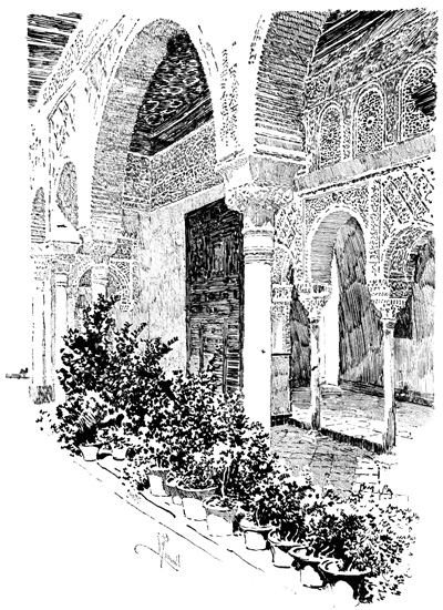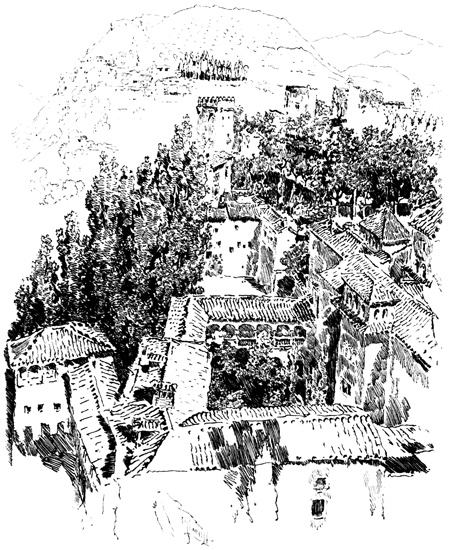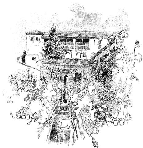 There have been many changes in the Alhambra since Irving's day. The Court of Lions lost in loveliness when the roses with which he saw it filled were uprooted. The desertion he found had more picturesqueness than the present restoration and pretence of orderliness. Irving was struck with the efforts which the then Commander, Don Francisco de Serna, was making to keep the Palace in a state of repair and to arrest its too certain decay. Had the predecessors of De Serna, he thought, discharged the duties of their station with equal fidelity, the Alhambra might have been still almost as the Moor, or at least Spanish royalty had left it. What would he say, one wonders, to the Alhambra under its present management? Frank neglect is often less an evil than sham zeal. The student, watched, badgered, oppressed by red-tapeism, has not gained by official vigilance; nor is the Palace the more secure because responsibility has been transferred from a pleasant gossiping old woman to half a dozen indolent guides. The burnt roof in xvii the ante-chamber to the Hall of Ambassadors shows the carelessness of which the new officers can be guilty; the matches and cigarette ends with which courts and halls are strewn explain that so eloquent a warning has been in vain. And if the restorer has been let loose in the Alhambra, at the Generalife there is an Italian proprietor, eager, it would seem, to initiate the somnolent Spaniard into the brisker ways of Young Italy. Cypresses, old as Zoraïde, have already been cut down ruthlessly along that once unrivalled avenue, and their destruction, one fears, is but the beginning of the end.