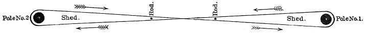 and making, in the very beginning of the process, the two sheds, which are kept distinct throughout the whole work. When sufficient string has been laid the end is tied to pole No. 2, and a rod is placed in each shed to keep it open, the rods being afterwards tied together at the ends to prevent them from falling out.