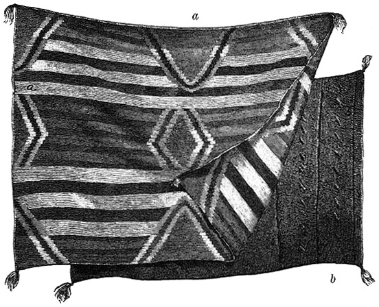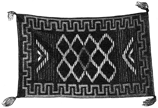 § I. The art of weaving, as it exists among the Navajo Indians of New Mexico and Arizona, possesses points of great interest to the student of ethnography. It is of aboriginal origin; and while European art has undoubtedly modified it, the extent and nature of the foreign influence is easily traced. It is by no means certain, still there are many reasons for supposing, that the Navajos learned their craft from the Pueblo Indians, and that, too, since the advent of the Spaniards; yet the pupils, if such they be, far excel their masters to-day in the beauty and quality of their work. It may be safely stated that with no native tribe in America, north of the Mexican boundary, has the art of weaving been carried to greater perfection than among the Navajos, while with none in the entire continent is it less Europeanized. As in language, habits, and opinions, so in arts, the Navajos have been less influenced than their sedentary neighbors of the pueblos by the civilization of the Old World.