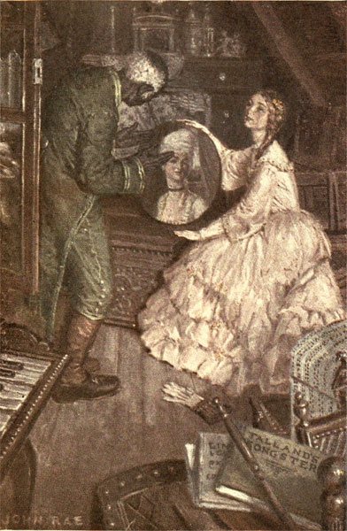 "Look!" said Jonathan dragging his daughter by the arms, and pointing [Pg 105] to the portraits along the wall. "You are the first to disgrace them! They were as fine a line of men and women as was ever bred up in America. Think you they stepped down from their high places for silly fancies? Think you they forgot they were born to superior circumstances and sullied their reputations?"