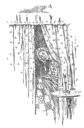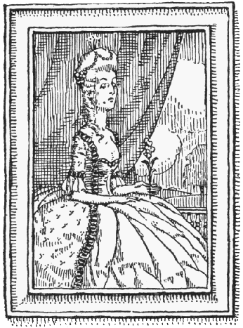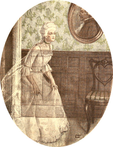 Terror of her father—of them all—swept over her, chilling the very recesses of her being. As the [Pg 34] habiliments of her august relatives became more distinct, she grew calmer. With slow and measured tread they walked, while to their right minced Betty, a small abigail, swaying a lantern.