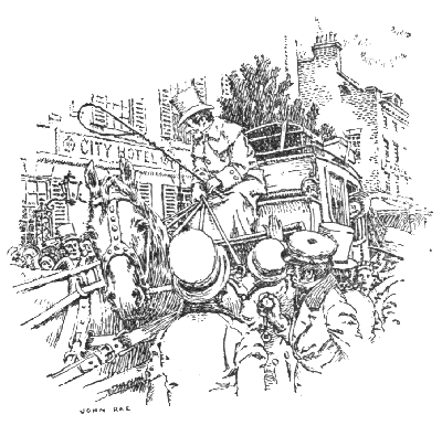 "Go away!" snuffled that once resolute woman, too weak to combat any longer. A feeling of despair was settling upon her like a pall. What if Mrs. Rumbell, or, worse still, if Mrs. Snograss should be passing Knickerbocker House and hear the oaths and ungenteel voices of the supposedly elegant family? No tap-room fracas at Fraunces' could have equalled the deafening hubbub.