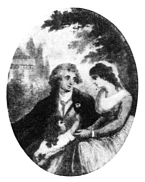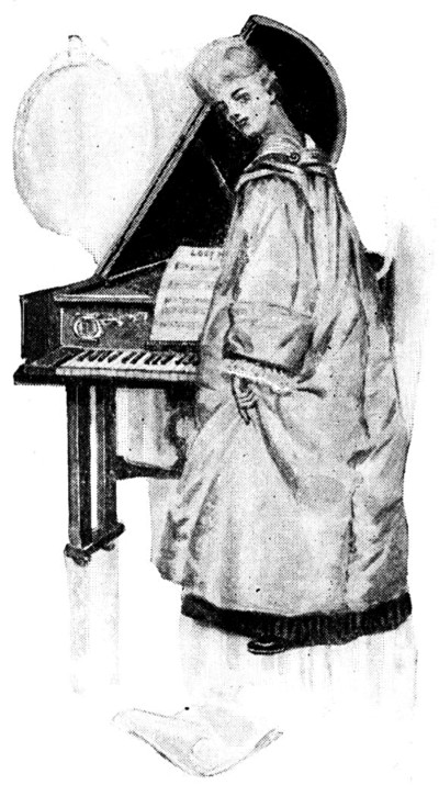 The melancholy maid turned round on her clavichord stool, and as she rose to courtesy, the color left her cheeks, for before her stood a youth strangely like her longed-for lover, but of a finer presence. His eyes, hair, and nose were the same, and when he spoke, the tones of his voice—low and tender, like Isaac's—were as balm to her lacerated heart.