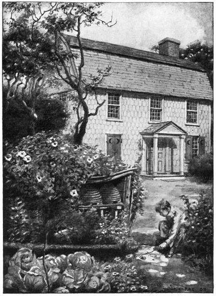 The whole house was soon in a bustle. Sarah Franklin, who sat with Betsey Shewell on a bench in one of the fast-drying paths near the doorway, heard many sounds familiar to her housewifely ears. There were the whack and thump of duster and broom. Delicious odors soon[47] began to steal from the kitchen and mingle with the scents of revived flowers.