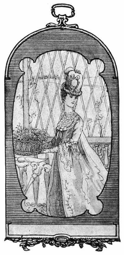 Early in the evening the neighbors began to arrive from nearby country-seats, and the house was soon filled with a great company, for Mrs. Bickley wanted her world to know of the honor being paid her. Along the south walk each of the boxwood grotesques was strung with little Chinese lanterns. A bush cut in the shape of a bird held a green dragon in the mouth. The host had planned for a garden frolic, but a soft rain was falling. A wit suggested that the fair ones don capuchins and repair to the lawn for a water-nymph dance. The drawing-room was filled with the noise of gay badinage and the rustle of silken garments. A female voice in an adjoining room was trilling in languishing strains Mr. Vernon's new Vauxhall-garden song, "Jenny and Chole." Between the notes one could catch the fretful murmur of the rain. Its patter on the catalpa leaves[50] near the windows was like the protestations of some band of elfin children angry at the death of moonlit hours and lost playtimes.
