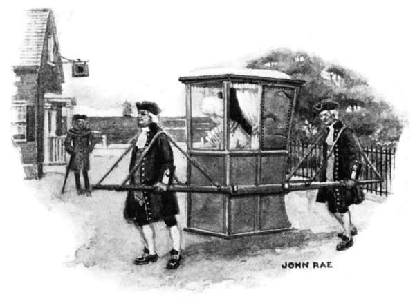 When the chairs came the Franklin household stood on the doorstep and wished their guests "good-night and good rest." West helped Miss Shewell into her sister's vehicle, bound for Stephen Shewell's abode on Chestnut Street, where the Bickley party were to pass the night. After the carriers started he followed in the chair's shadow until he neared the alley which led to his lodging-place; there he turned and threw a kiss at it in the darkness. The girl's conquest[25] was complete. The lights of love had burned him.