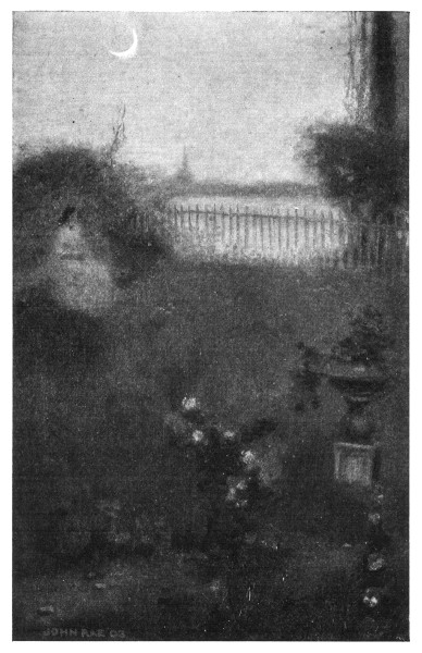 The figures on the porch, with their background of dim vines and murky bricks, made a night-piece worthy of the brush of Mr. Hogarth. To the girl, tired and distraught, the front of the house seemed to be covered with mocking faces like the masks about the playboard of the Philadelphia theatre. She hated them all with their looks of compassion, scorn, and surprise. The dull-witted Quakeresses were speaking again with her brother-in-law. Their slow-mouthed sentences came to her ears. "I am here like some poor thief awaiting jail," the girl thought, as she looked at them. Then the faces began to fade. She had wandered into a world of fragrant dusk filled with the good-night prayers of closing flowers. She would willingly go to jail for love.[39] There was nothing more beautiful in the world. Each prison bar she would twine with it. Each day and night should be carpeted with it. Her face was raised heavenward to the field of little stars.